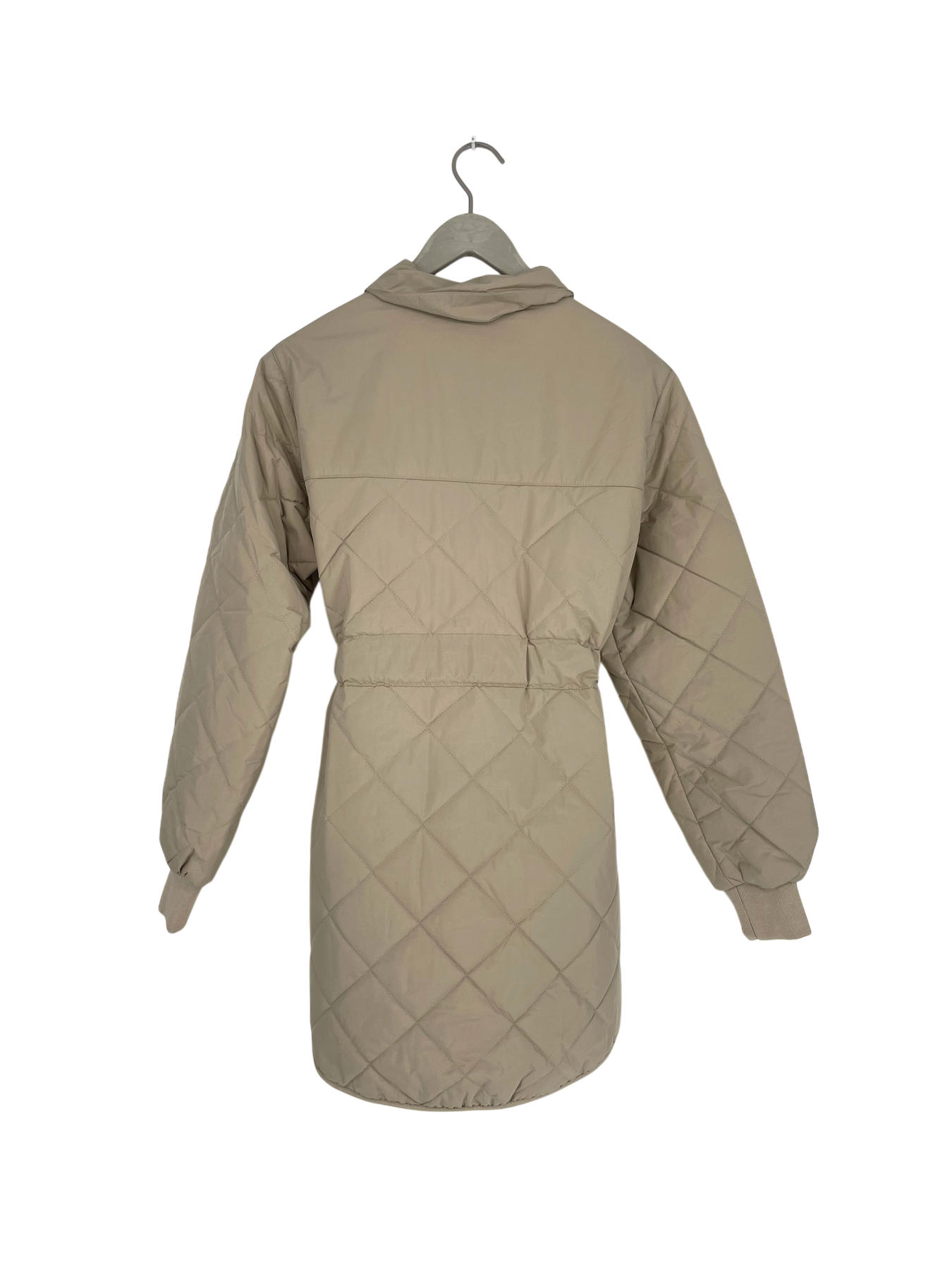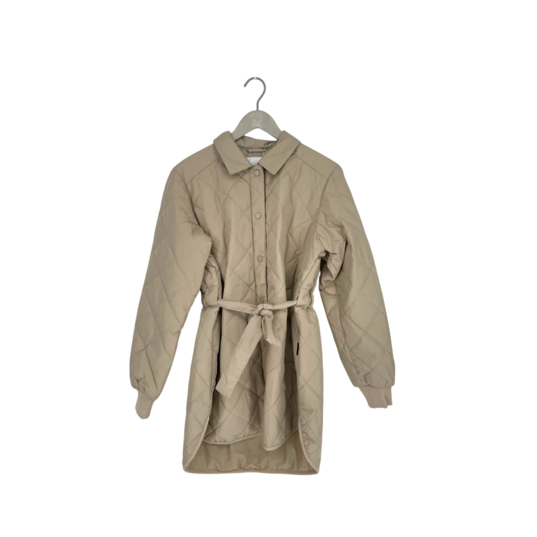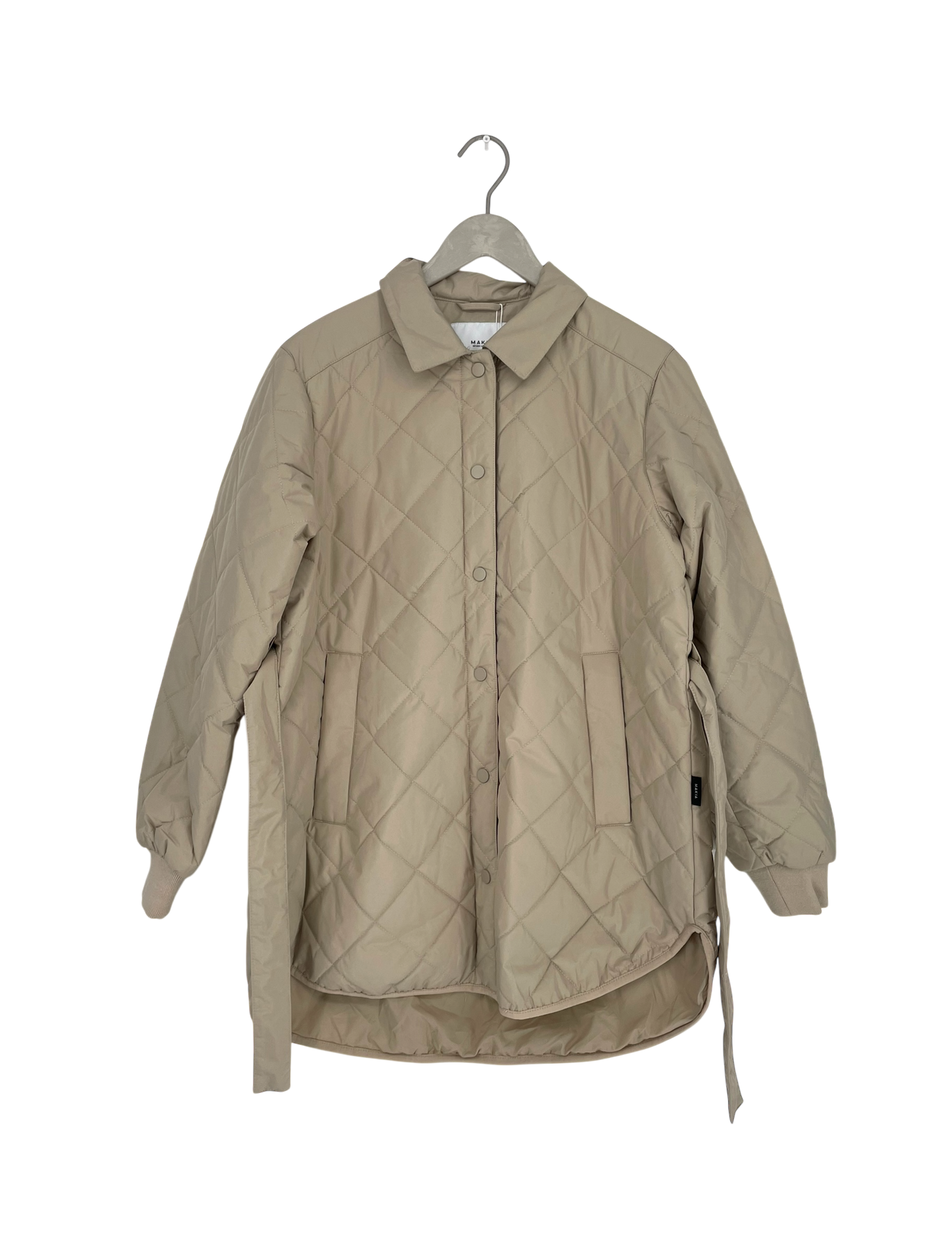 Makia Nala quilted jacket with collar and snap buttons. Detachable belt.