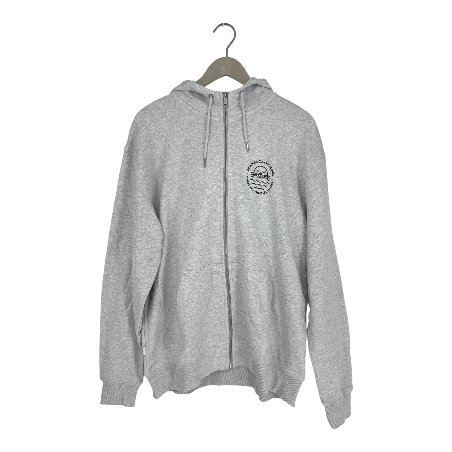 Makia PSS ry zipper hoodie with a logo print on the chest and the back.
