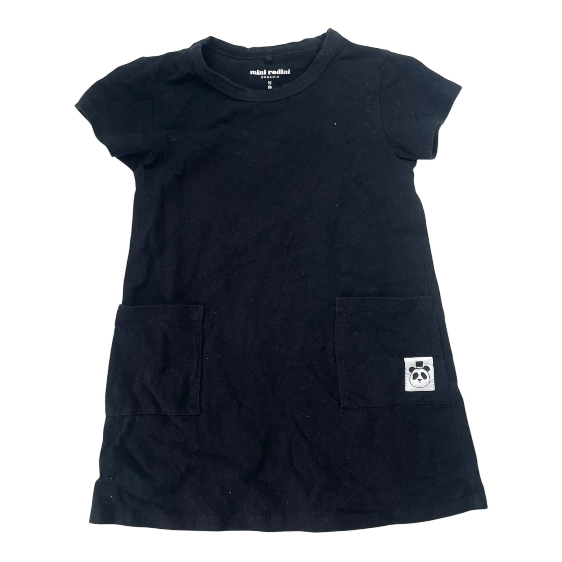 Mini Rodini short sleeve tricot tunic dress in black with pockets.