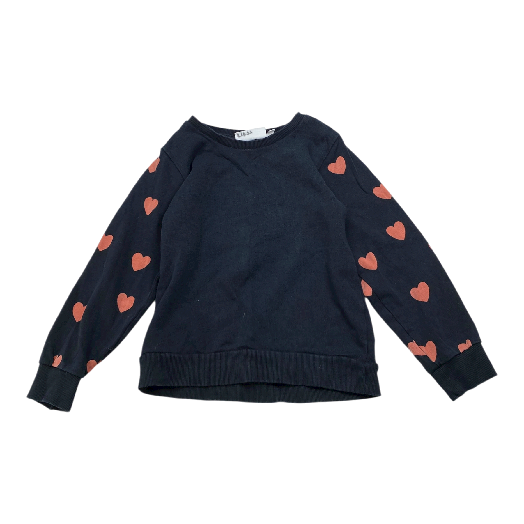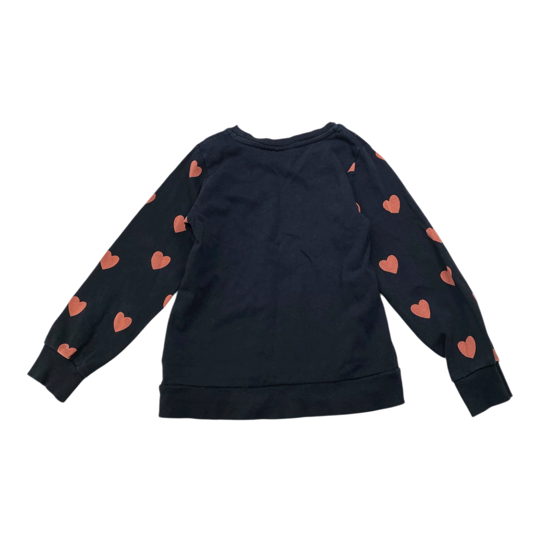 Mini Rodini sweatshirt with hearts print. The original color has faded off.