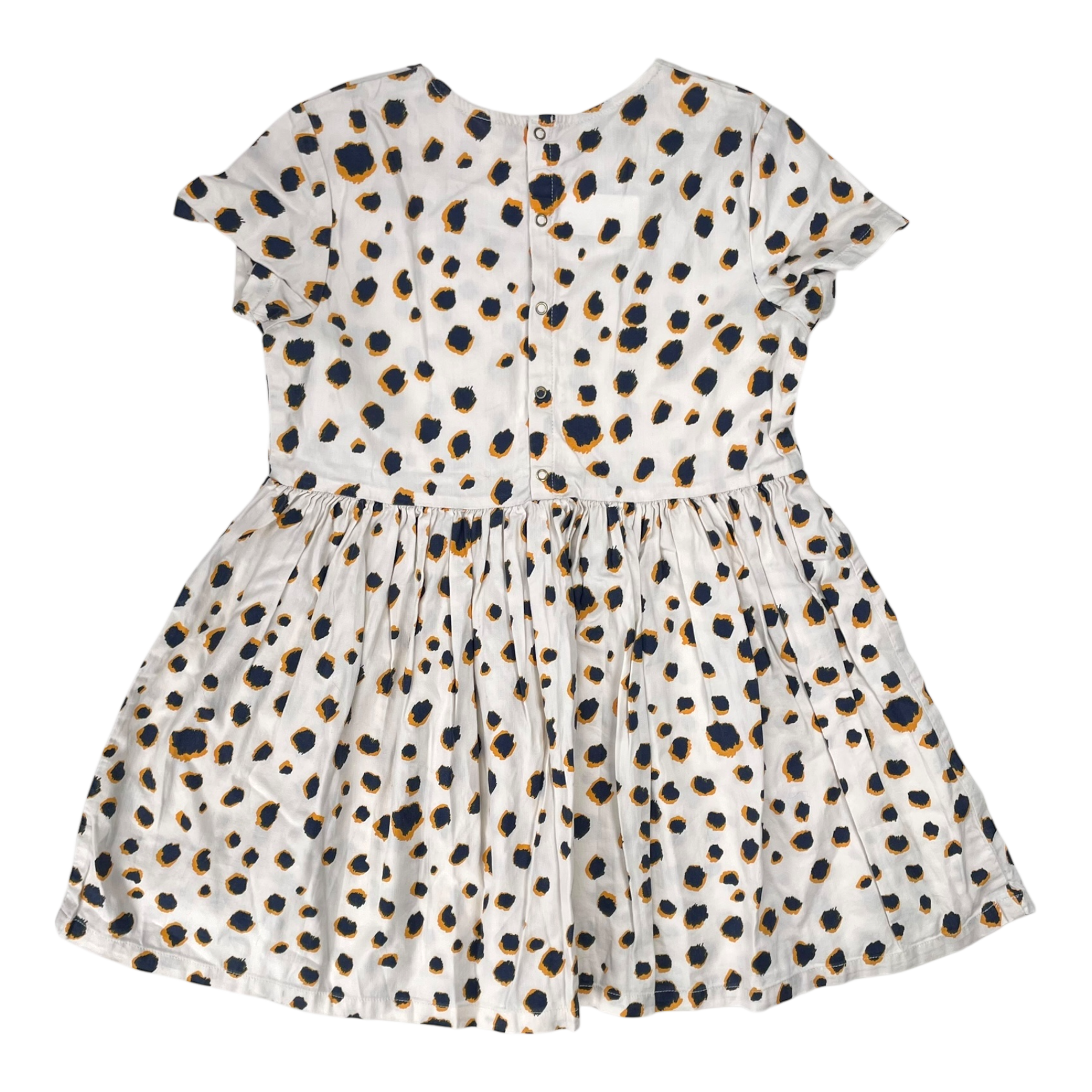 Mini Rodini woven dress with buttons in the back in leopard print.