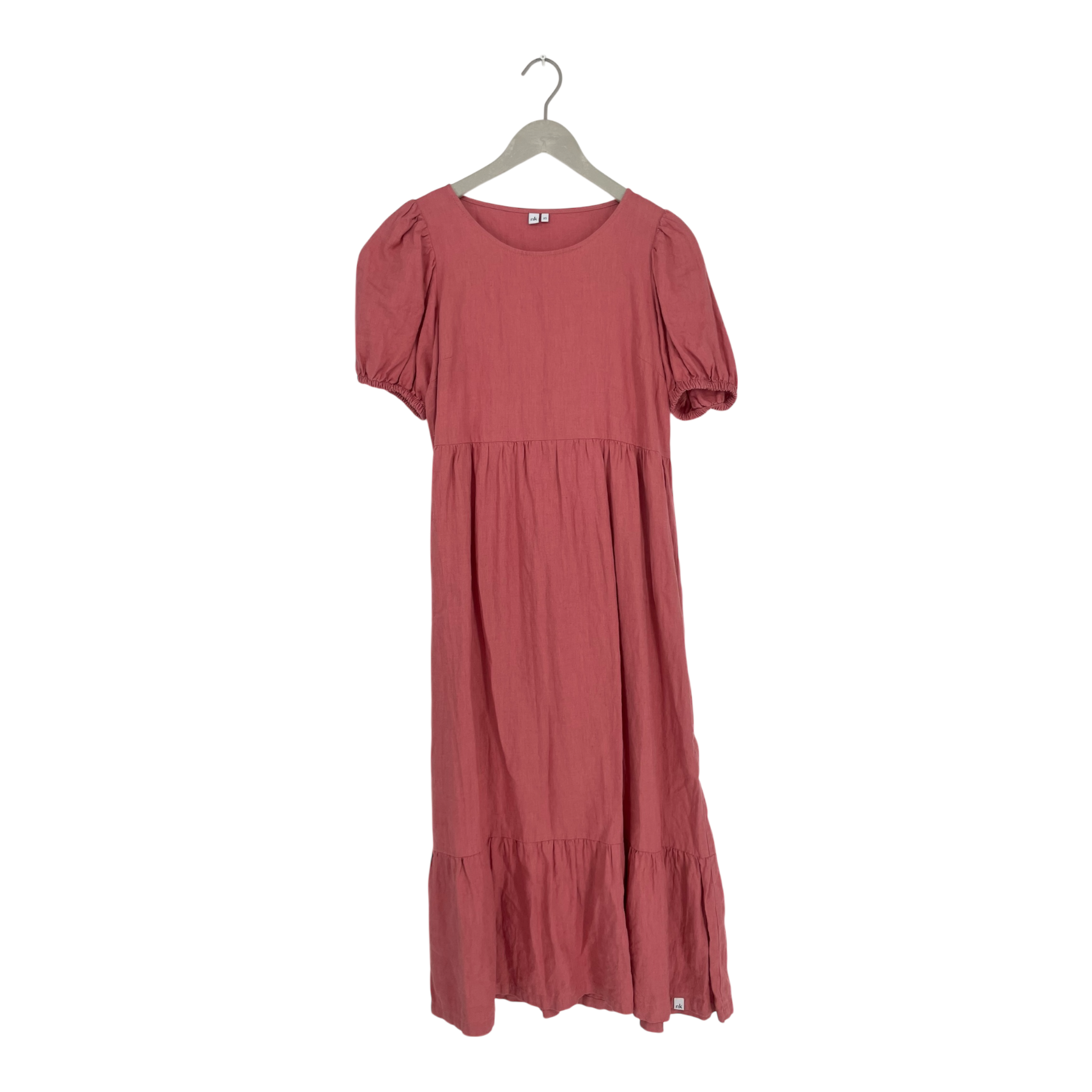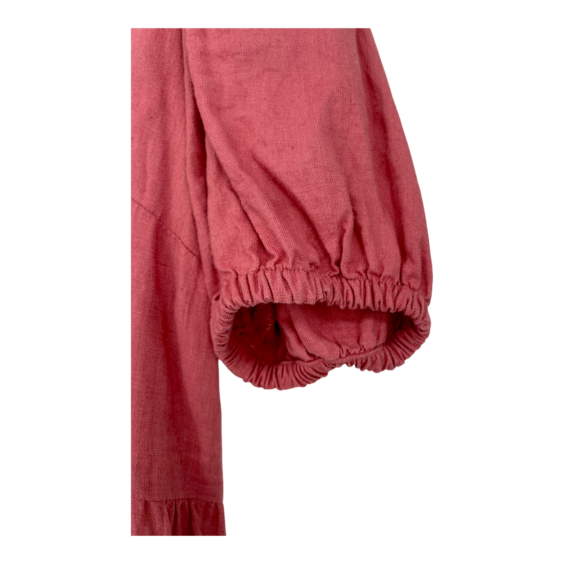 Nakoa puff sleeve linen dress with gather detailing on the waist and on the hem.