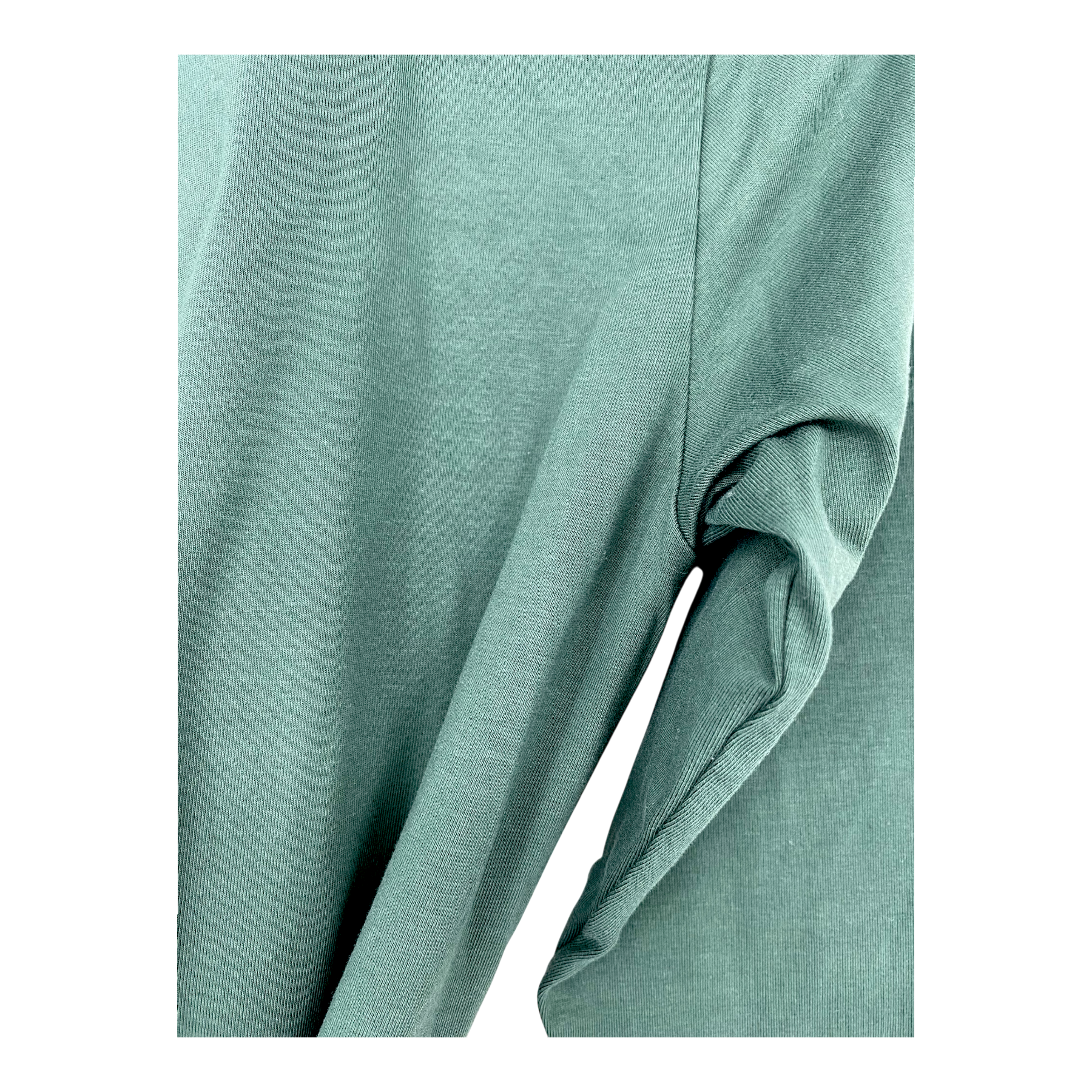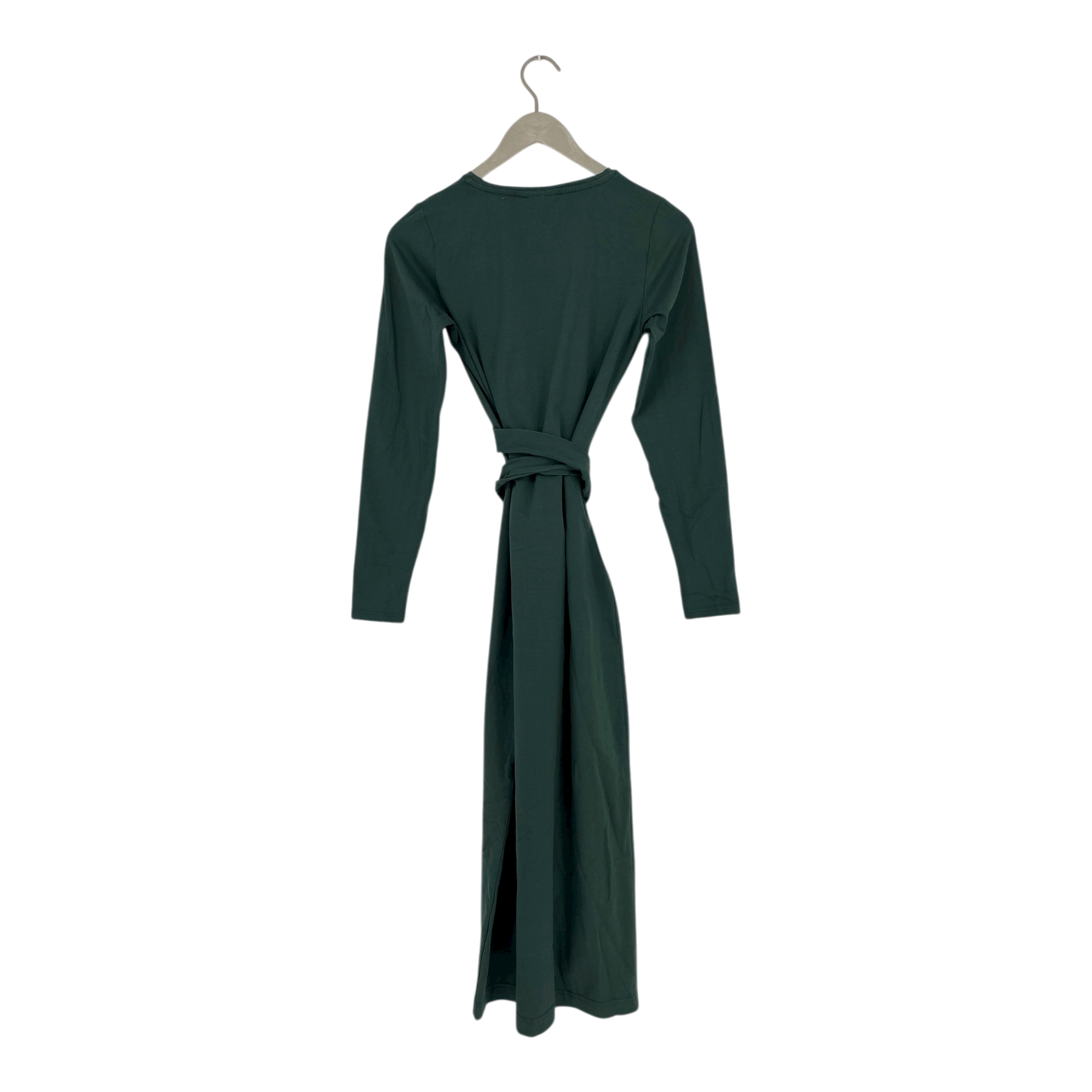 Nakoa long sleeve wrap dress. The item shows signs of wear on the fabric and the color has worn off somewhat.