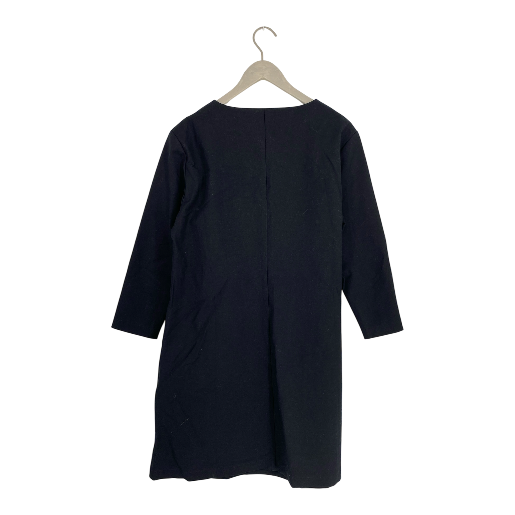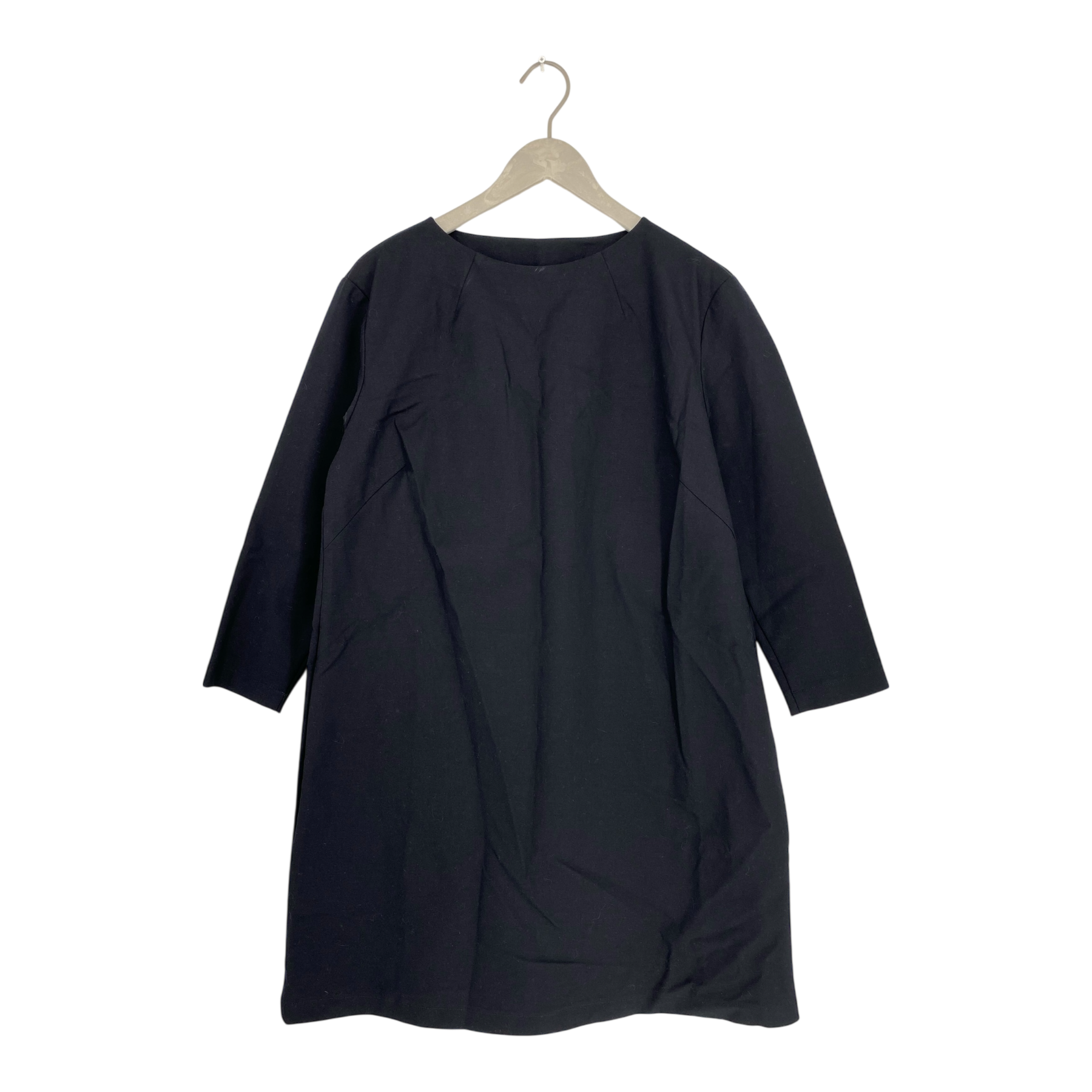 Papu women's woven Minimal dress. The fabric is thin but sturdy and easy to iron. There are pockets on the side seams of the dress. The fitted sleeves are 4/5 length.
