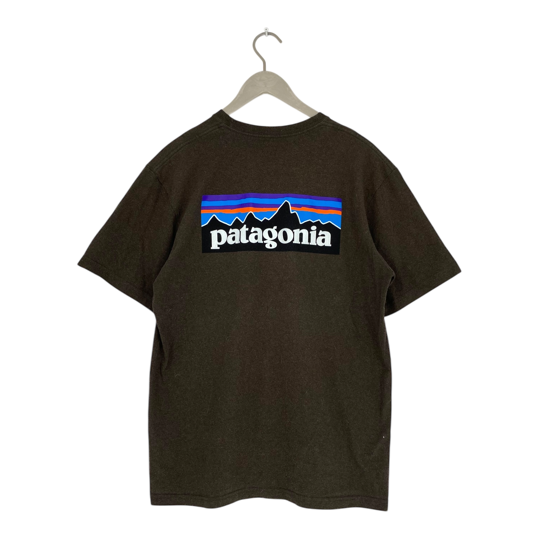 Patagonia T-shirt featuring a logo print on the back and small Patagonia text on the front.