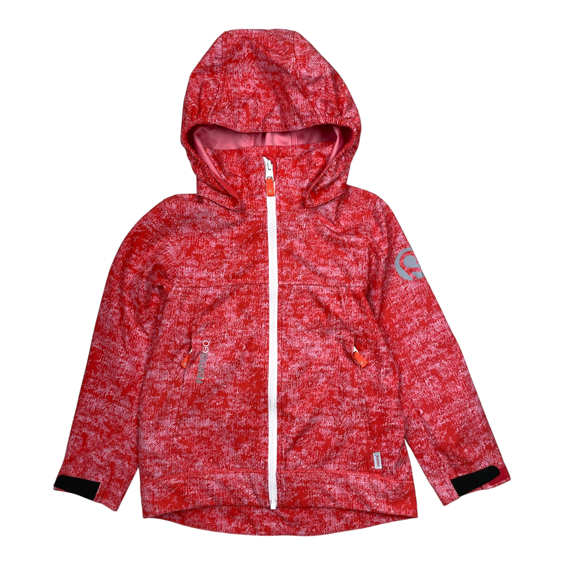 Reima April light mid-season jacket with a removable hood, adjustable cuffs, and two zip pockets in front. The item has a faint scent of detergent or fabric softener.