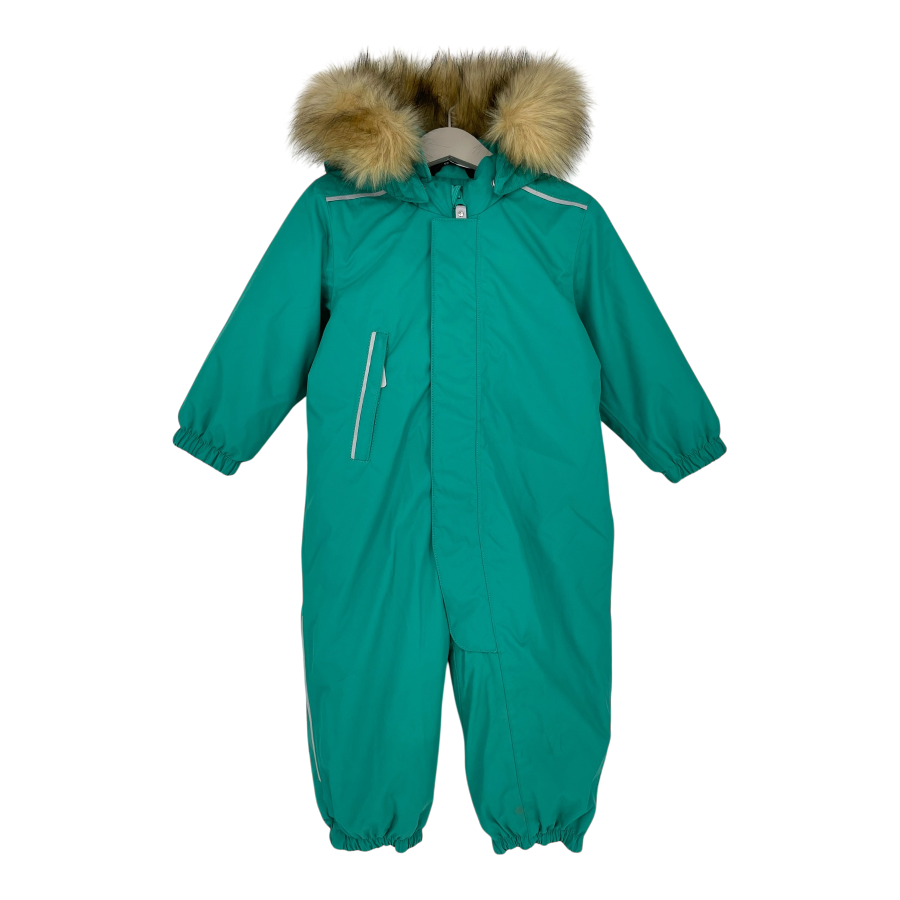 Reima Gotland winter overall with detachable faux fur hood and one zip pocket. This winter style has an insulated seat that keeps the bottom warm and dry during fun winter adventures. The smooth polyester lining makes dressing up easy, and the lining is also ideal with warm mid-layers.