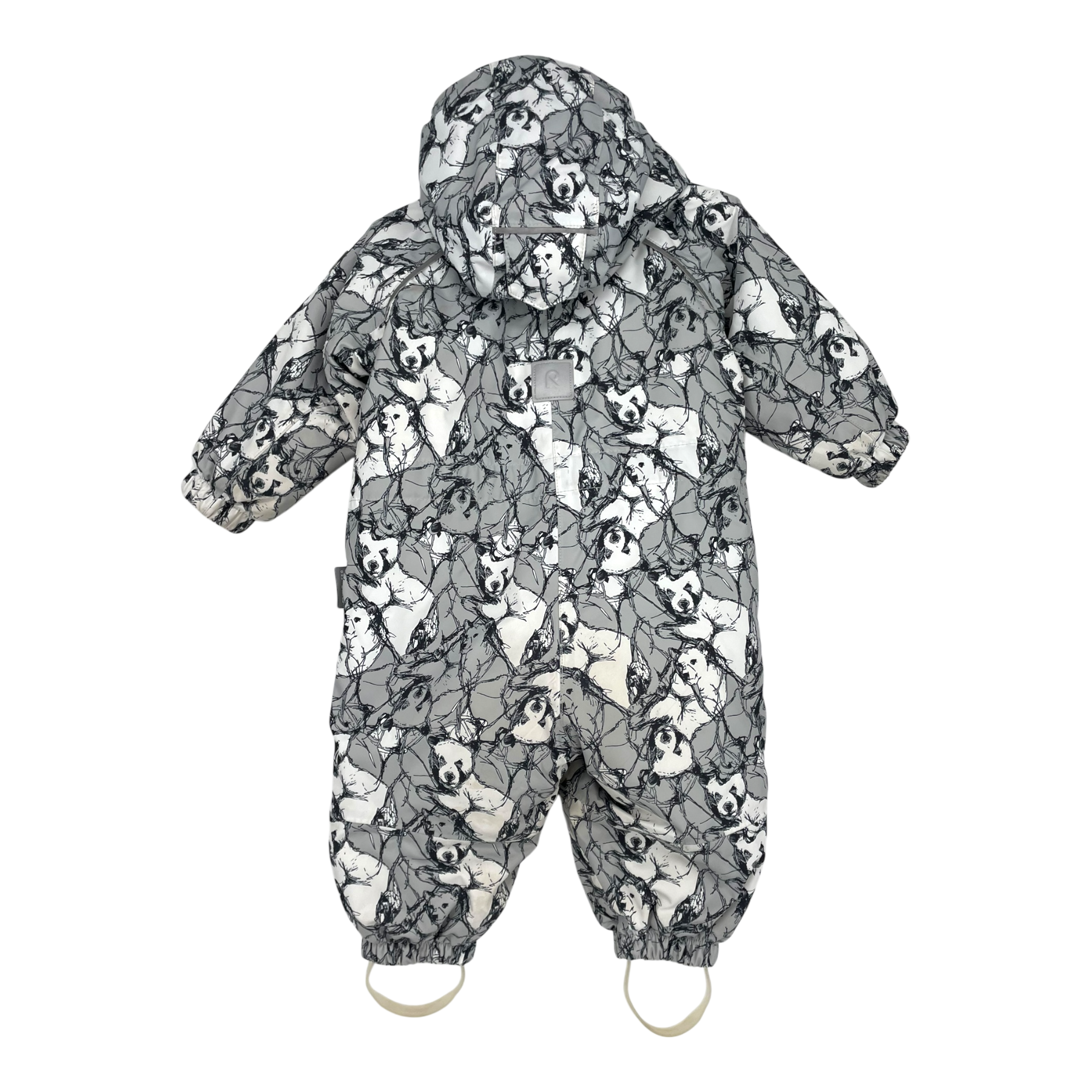 Reima Langnes winter overall is a warm toddler snowsuit, made with recycled materials. The overall is fully waterproof, breathable, and durable with detachable and adjustable hood and Durable silicone foot loops. All the seams have been sealed waterproof, and the seat is insulated.