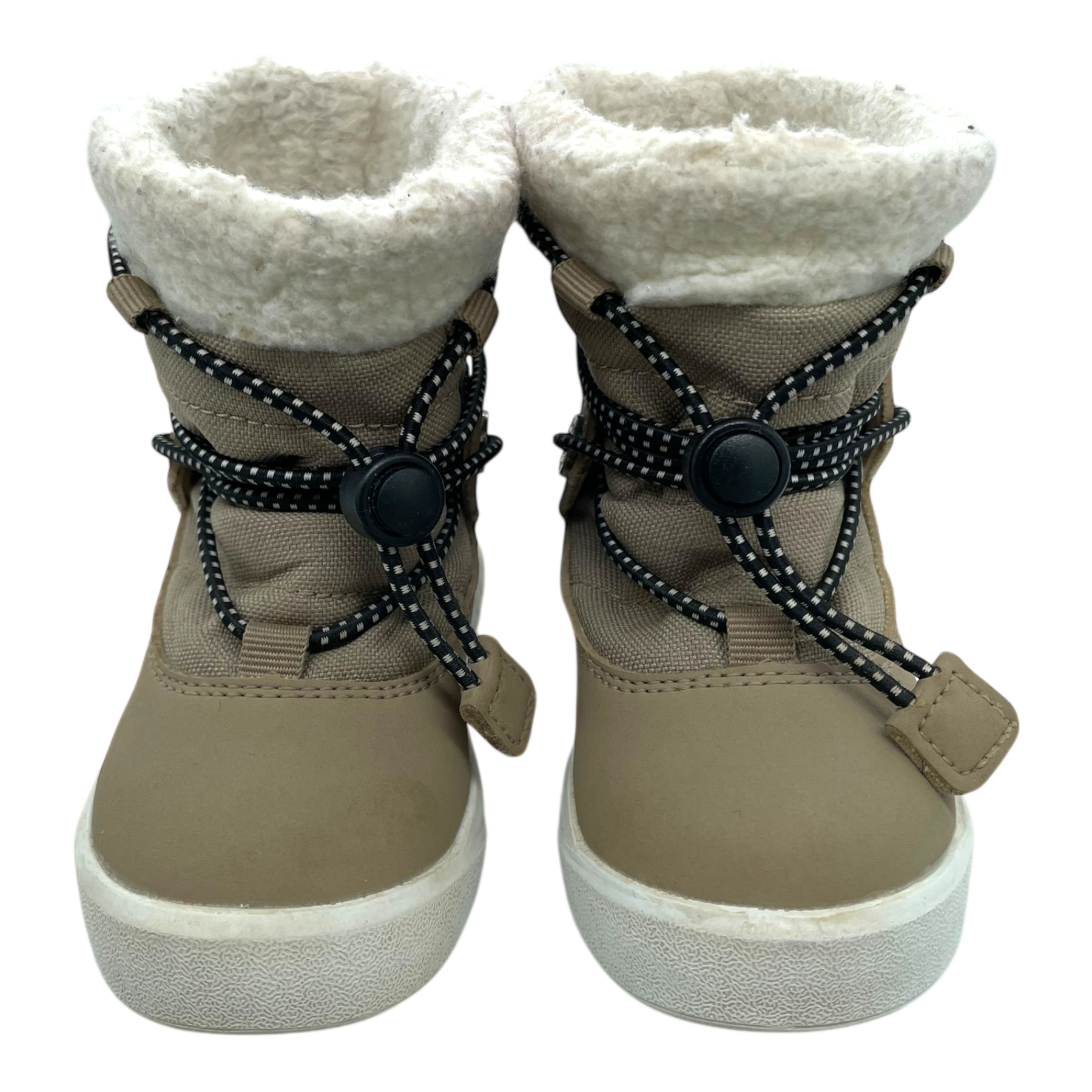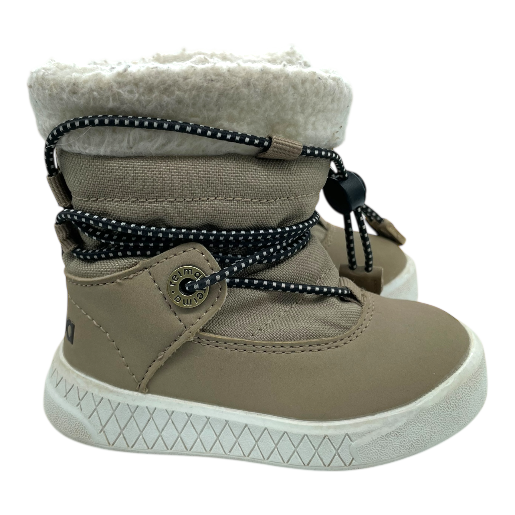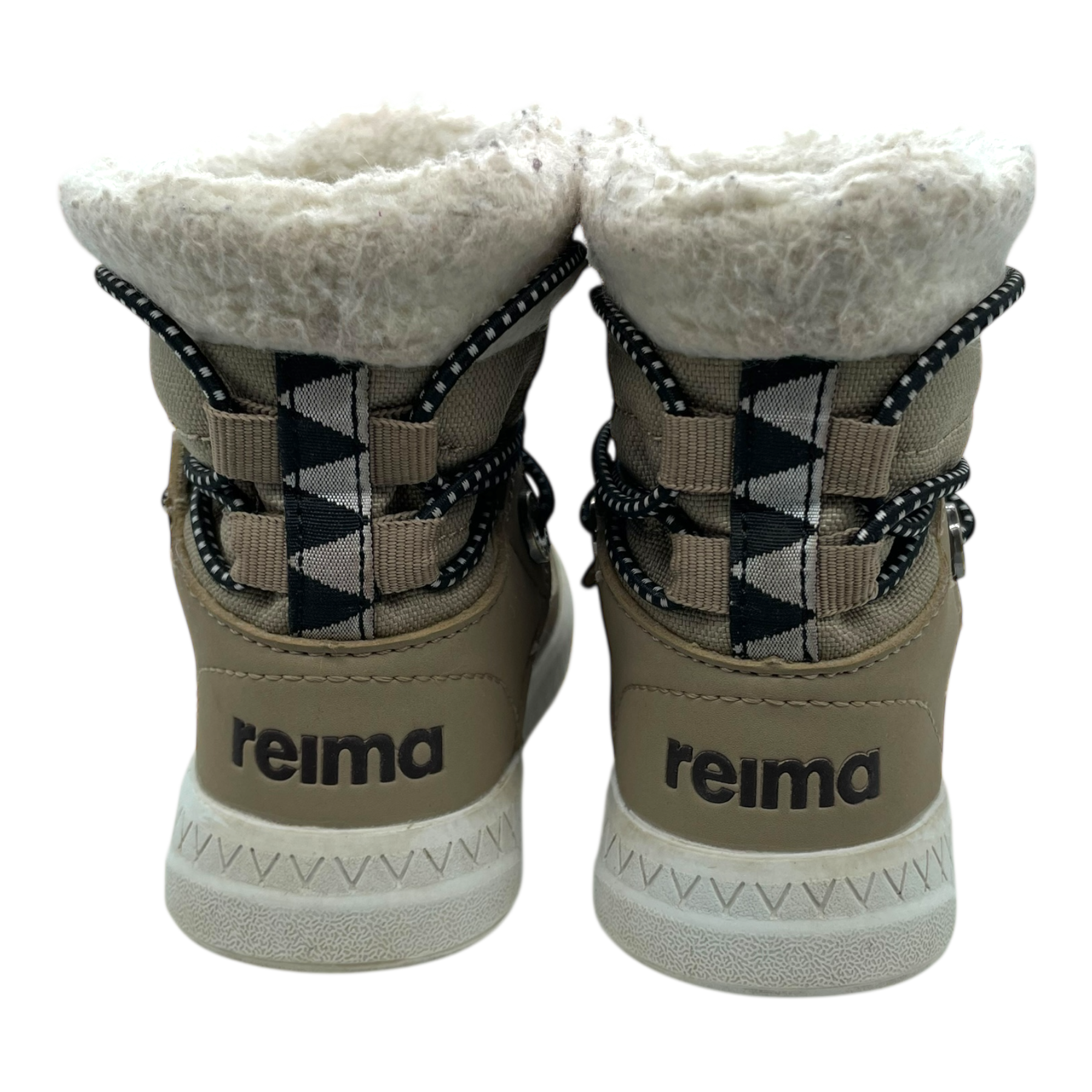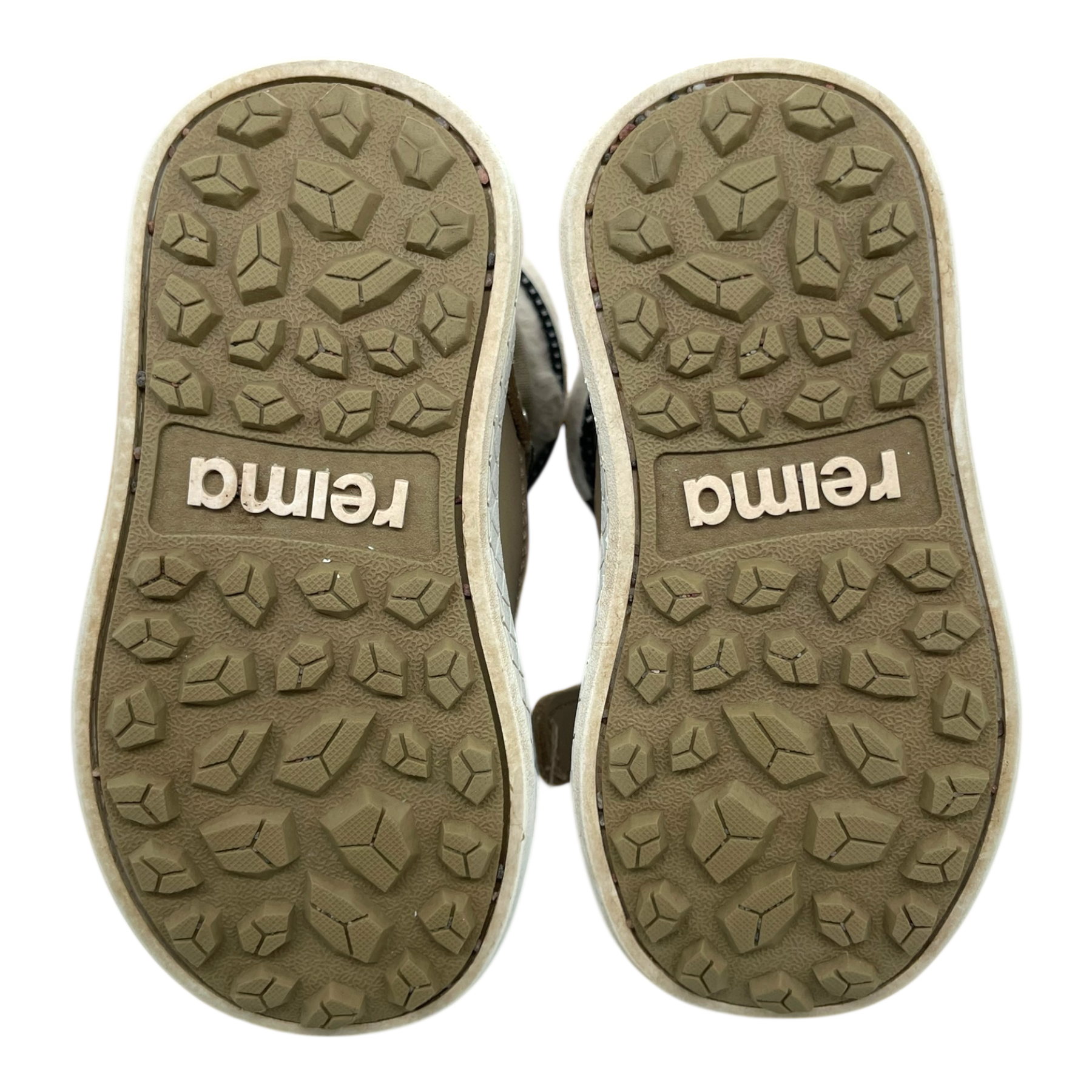 Reima Lumipallo winter boots with elastic laces for easy pull-on. Soft synthetic uppers repel water and dirt while a fleece lining ensures feet stay cosy and warm.