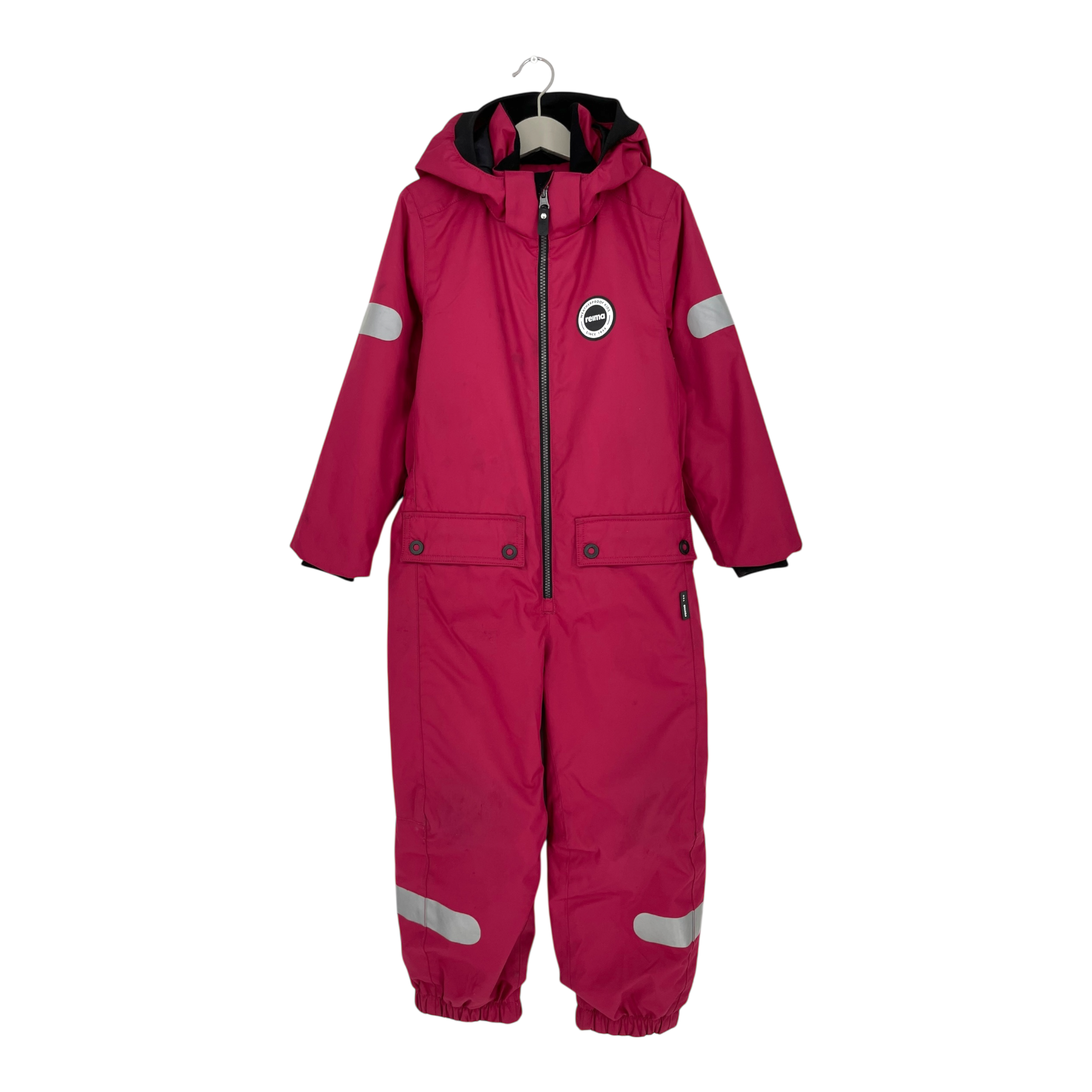 Reima Sevetti midseason overall draws inspiration from Reima's '70s-style collections. Overall has a detachable hood, adjustable elastic on the waist, silicone foot loops and two flap pockets on the front.