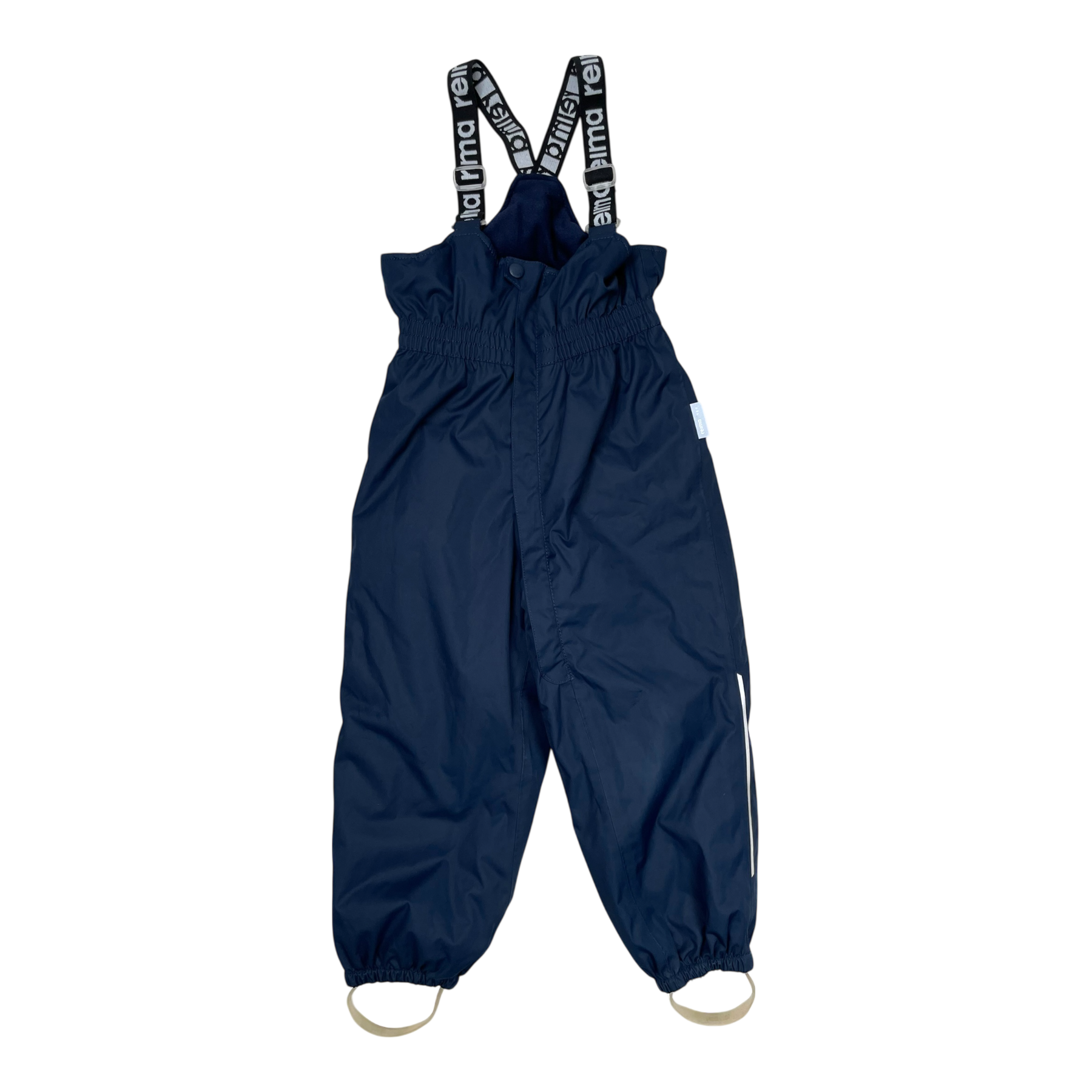Reima Stockholm padded winter outdoor pants with adjustable elastic suspenders and an elastic waist. Long zip closure, durable foot loops and reflective details. Material is originally waterproof up to 10,000mm water column and all seams are sealed. Material is durable but breathable.