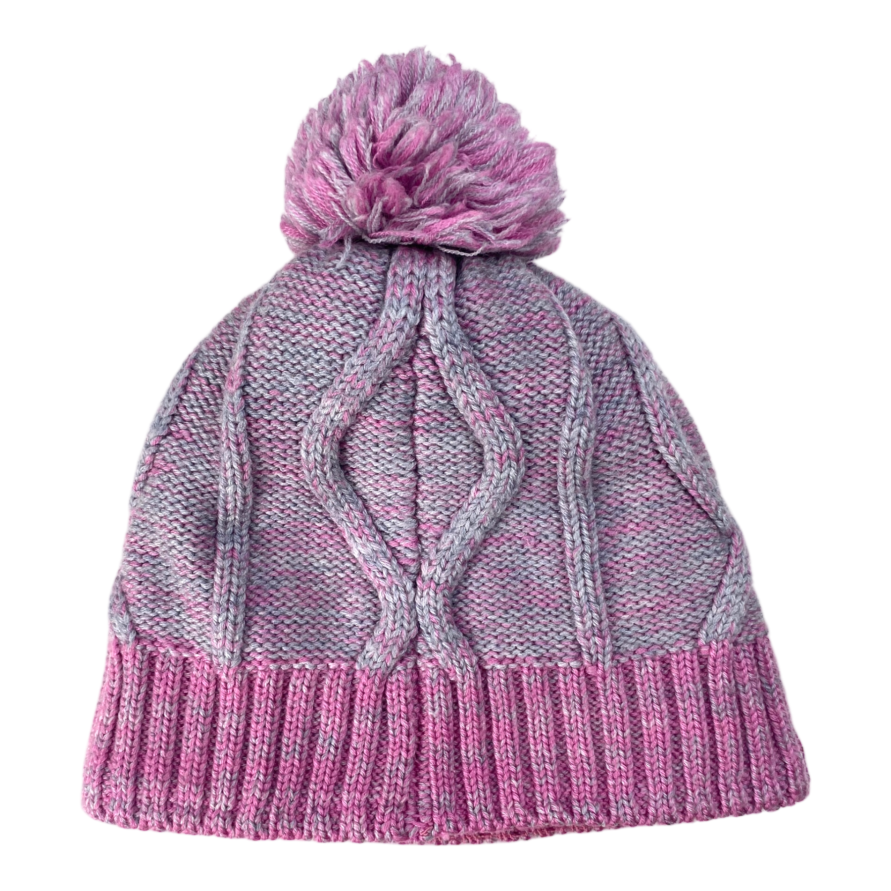 Reima beanie with pom on the top and a reflective logo. The fabric is slightly fluffed.