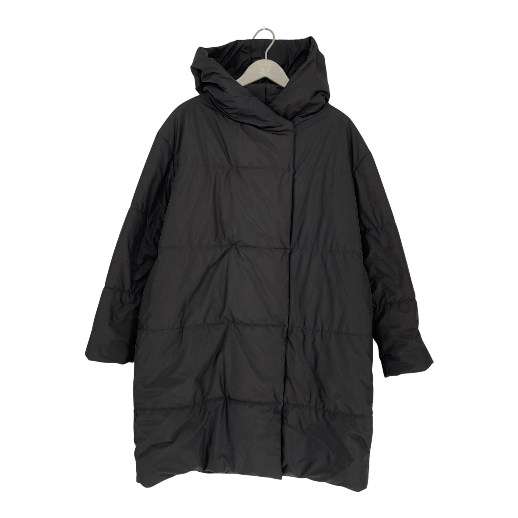Ritva Falla padded winter jacket with wide neckline that can be worn up. The jacket has a zipper fastening and a snap button closure. A hood and pockets.
