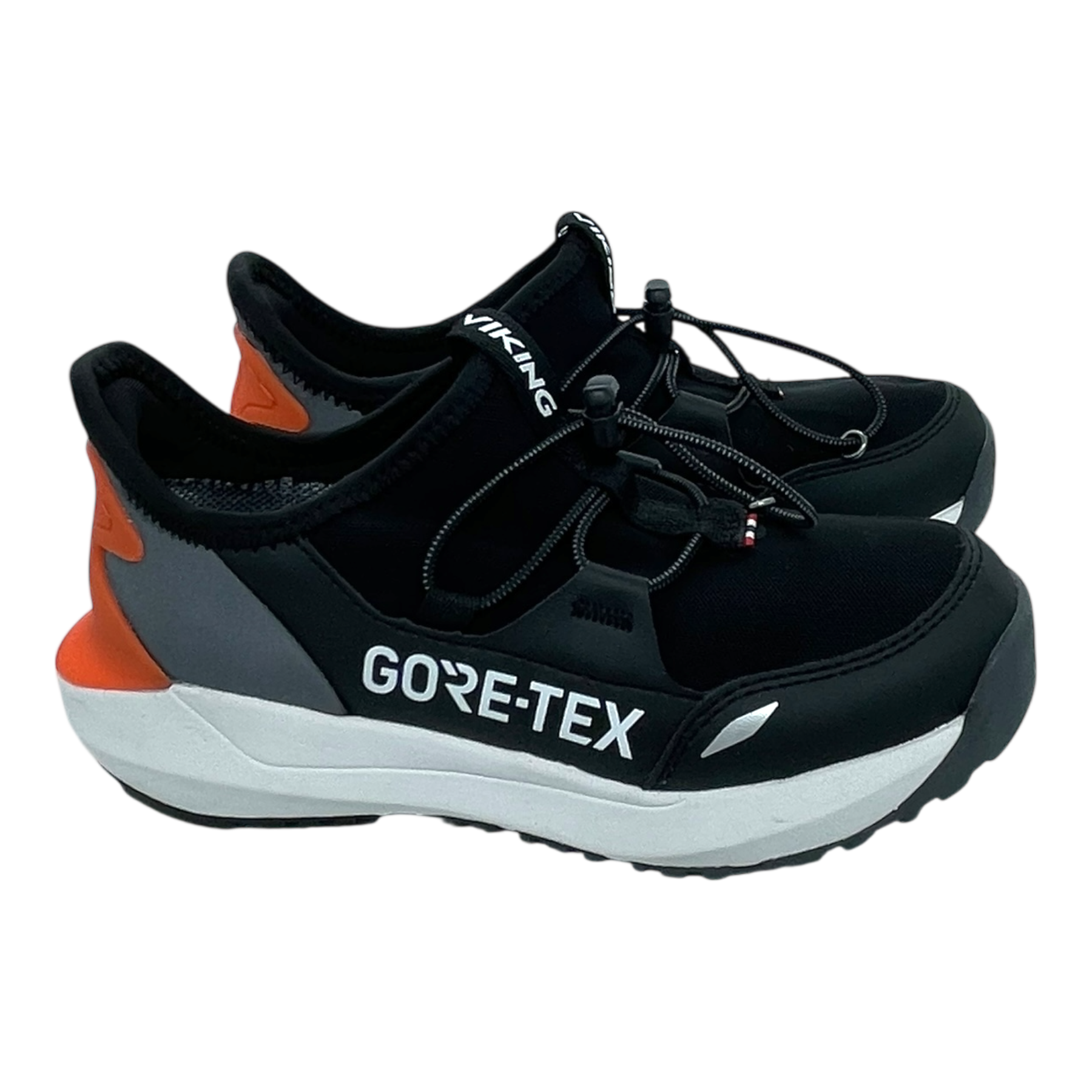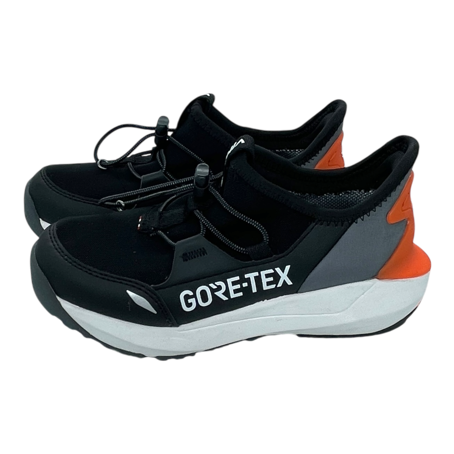 QuickGo GTX SL kids’ shoes make getting ready fast and easy. The innovative design lets children put on and take off the shoes themselves, with an outward-folding heel and a protruding plastic heel piece for hands-free removal. Inside, a padded foam collar ensures comfort and secure fit.