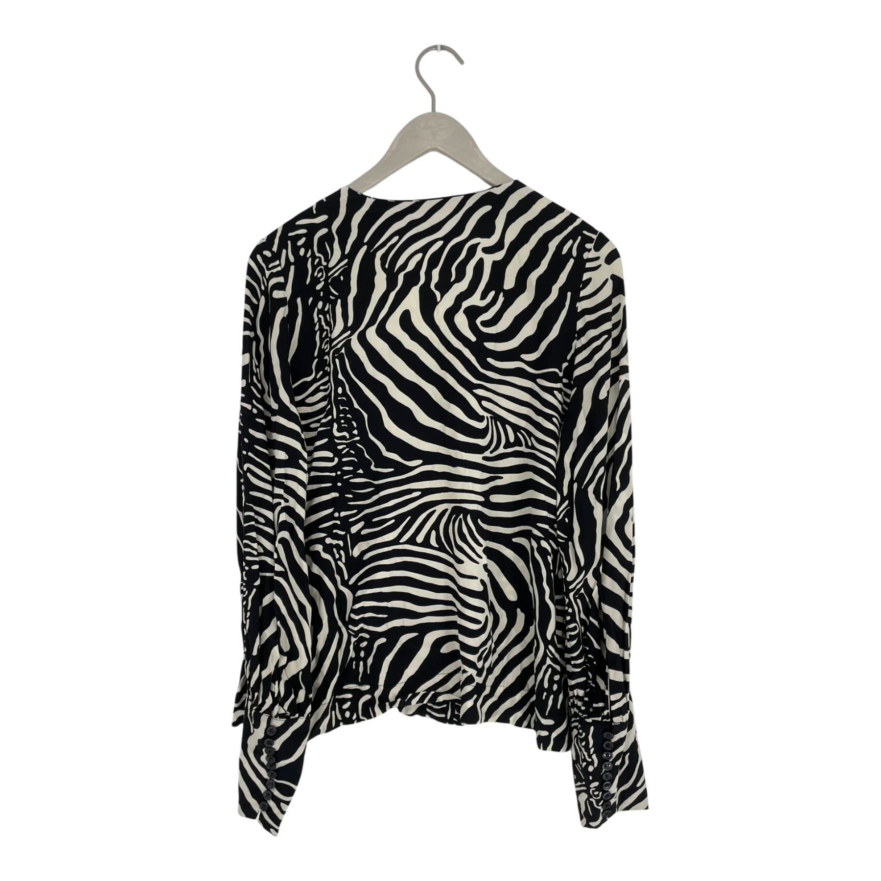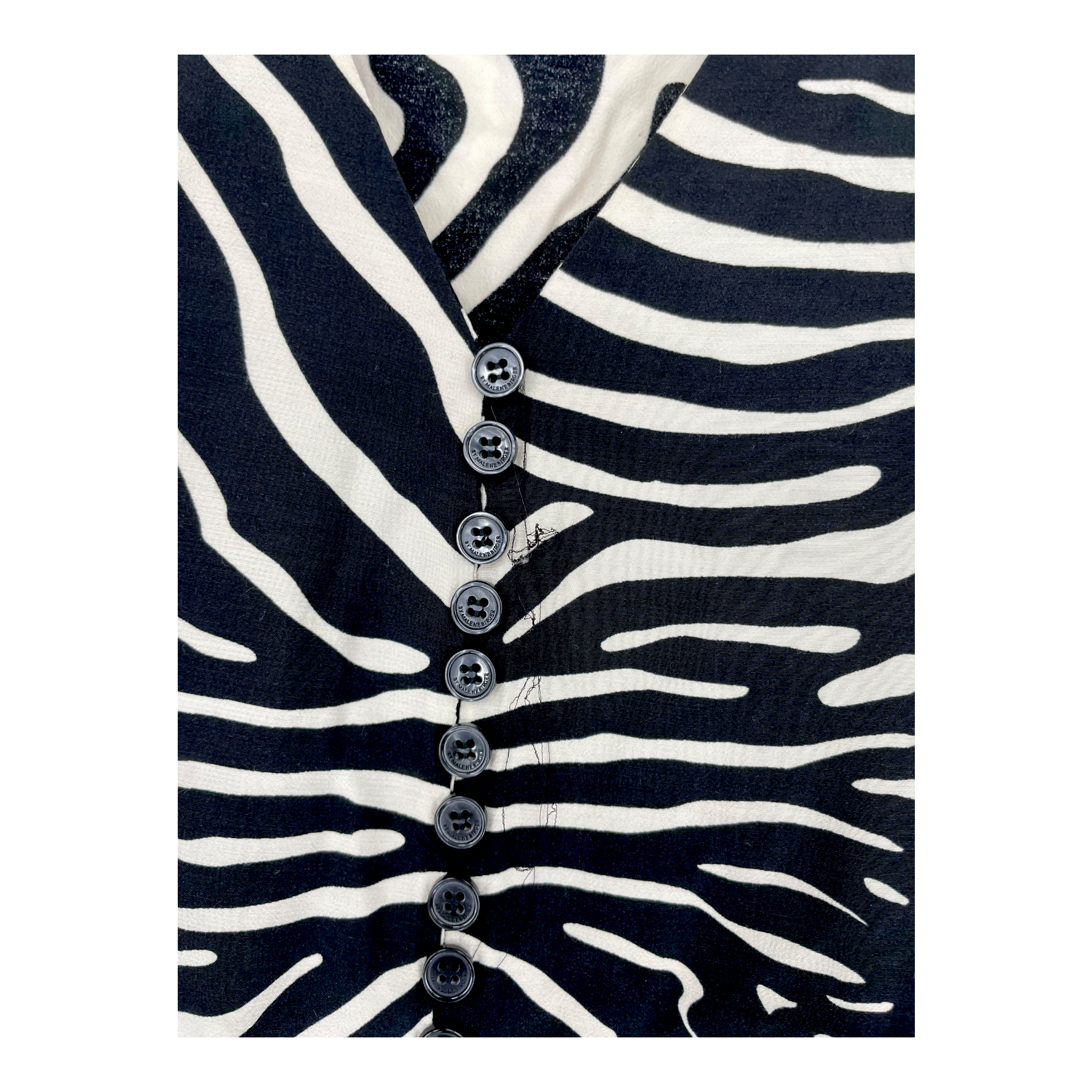 By Malene Birger fully buttoned Gertryd blouse with a v-neck collar and large fully buttoned cuffs. The item has multiple runs of thread, as shown in the pictures.