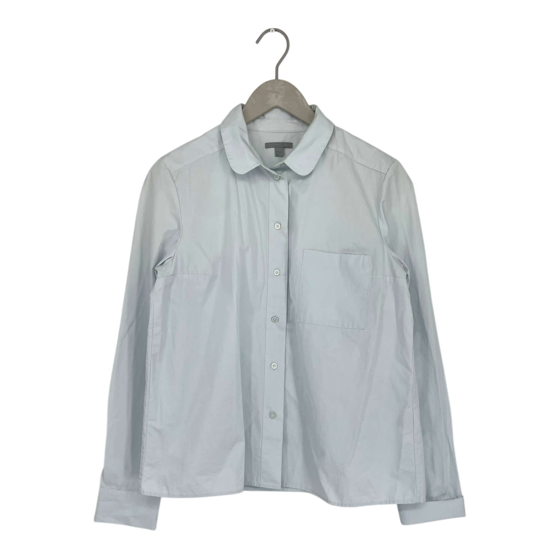 COS basic buttoned business shirt with fully buttoned placket and front pocket in light icy blue. Spare button in the laundry tag.