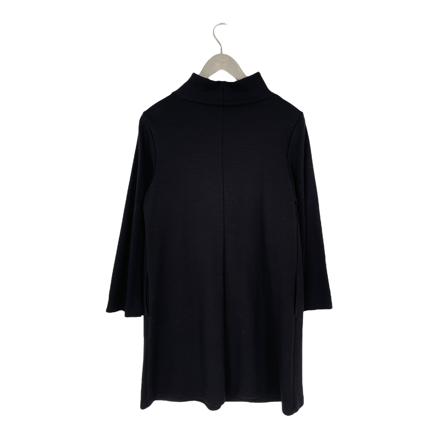 Falla Finland® Talvikki tricot dress. Wrapped mock neck, side pockets and slits on the sleeve ends.