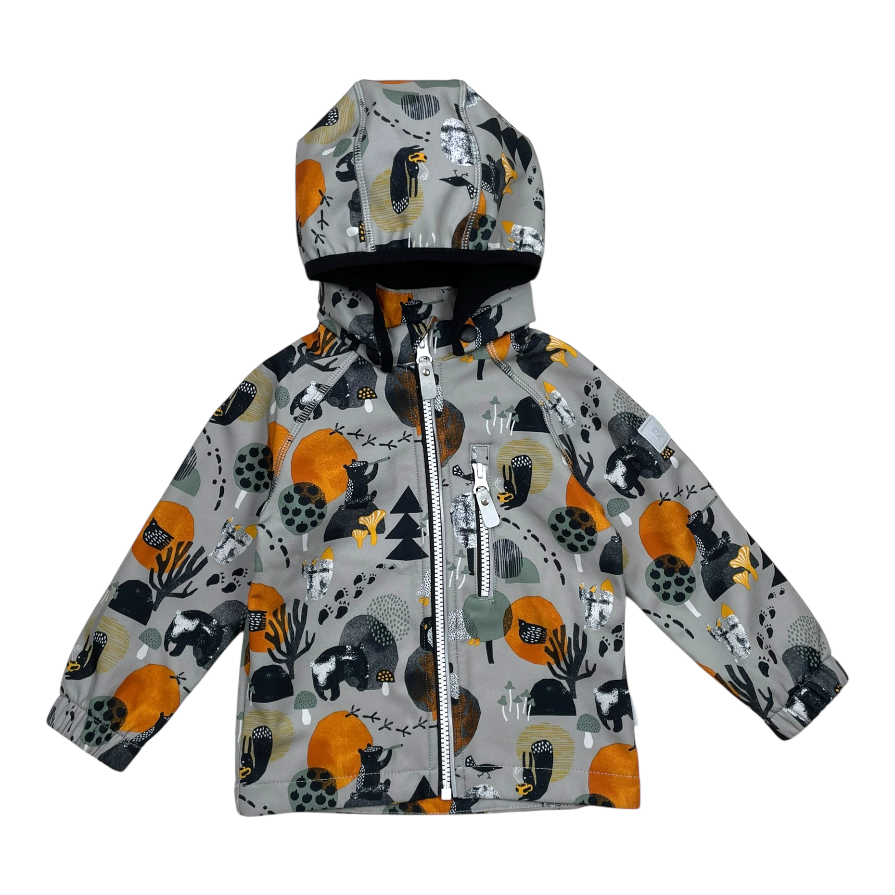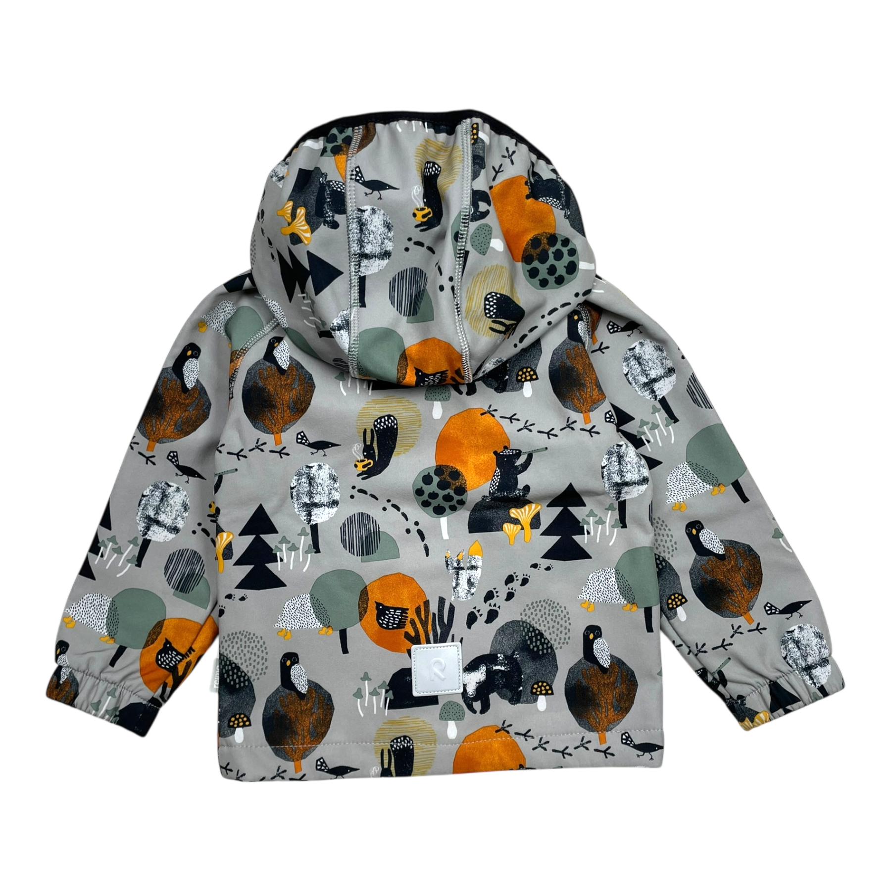 Reima Vantti softshell midseason jacket with detachable hood, zip pocket, and zip closure. The material is originally water- and windproof. The soft fleece on the reverse not only feels nice against the skin but warms too.