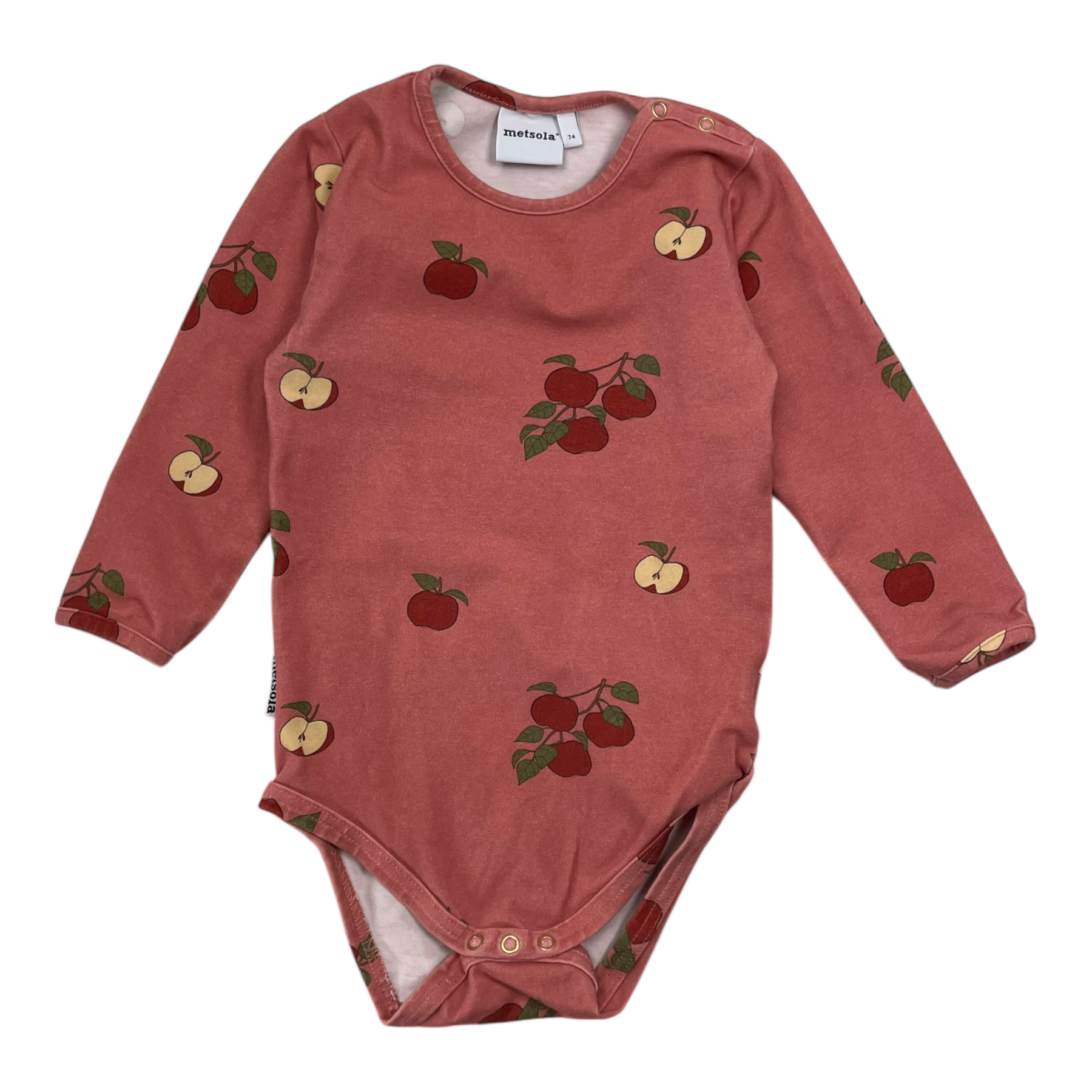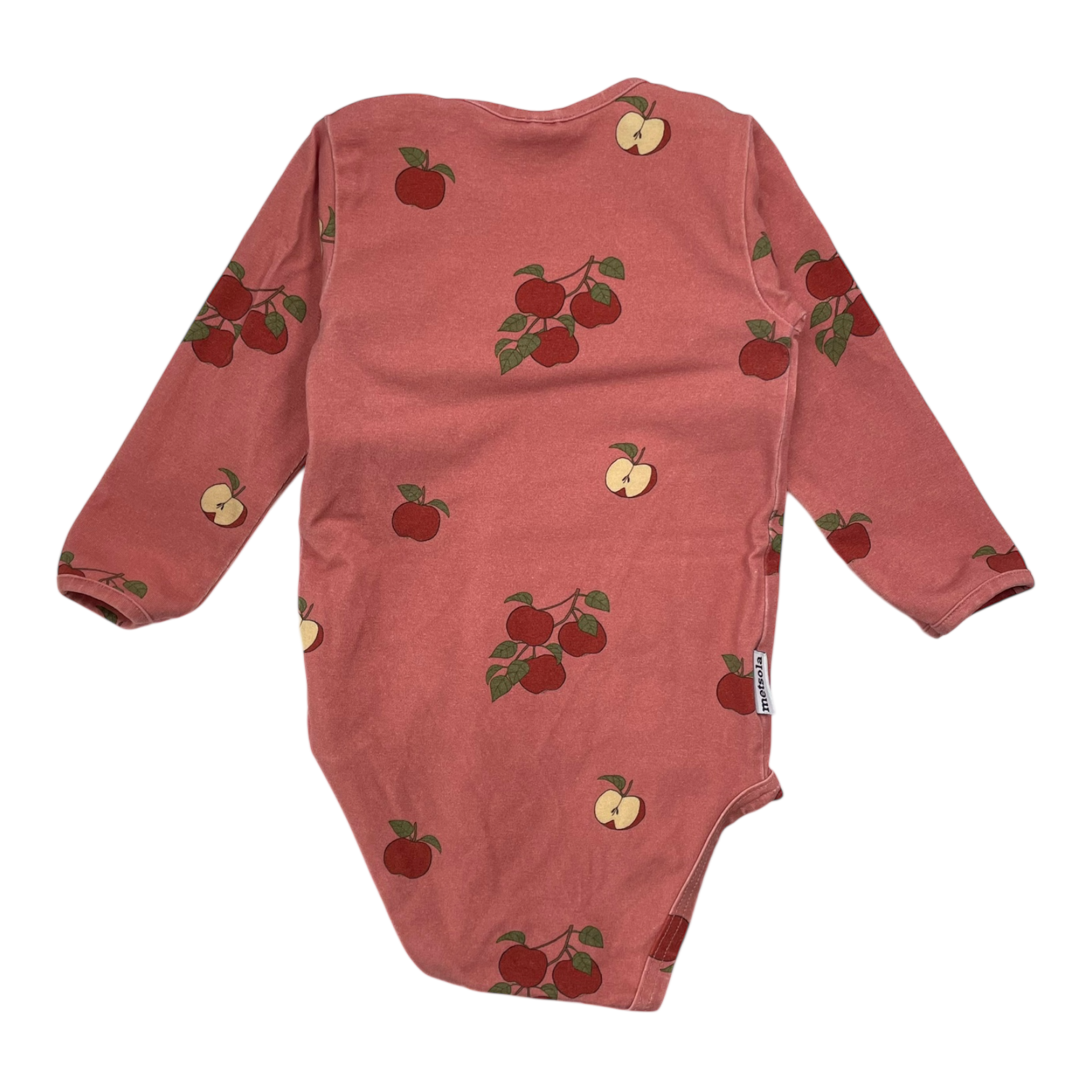 Metsola body with snap buttons in an apple print.