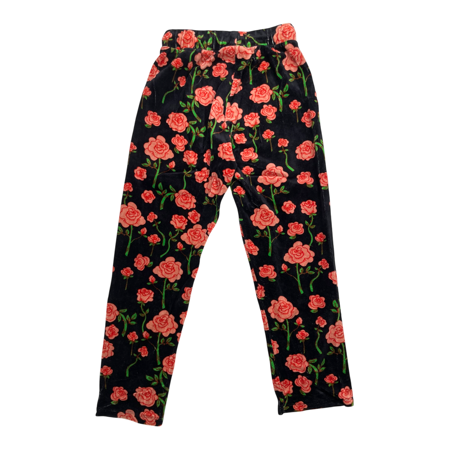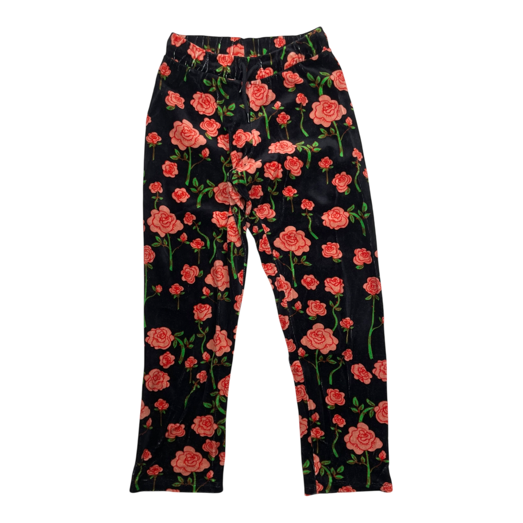 Mini Rodini velour pants in roses print and with an elastic drawstring waist.