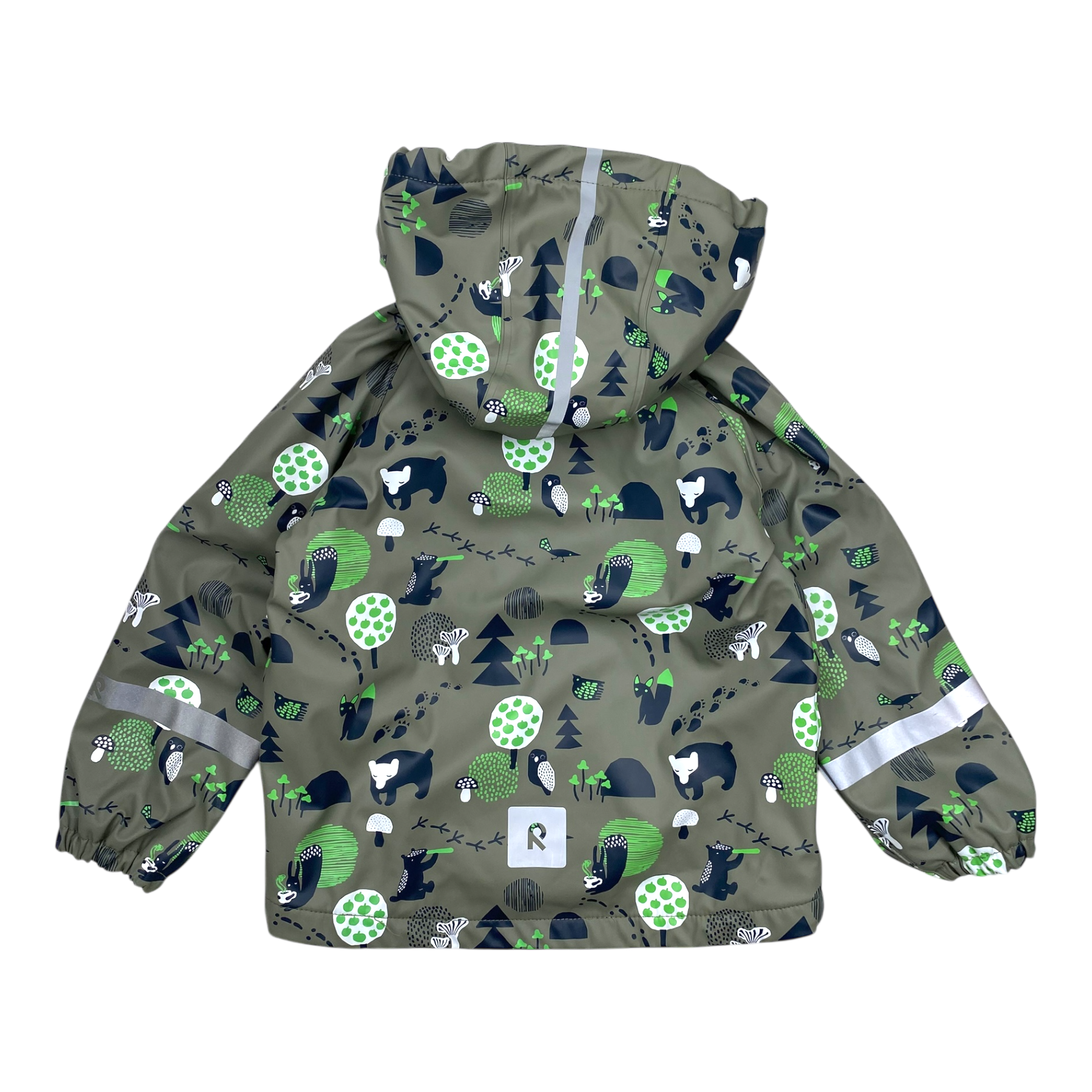 Reima kids' Koski rain jacket has a warm fleece lining, reflective details, and a detachable hood. Fabric is originally waterproof up to 10,000mm water column.