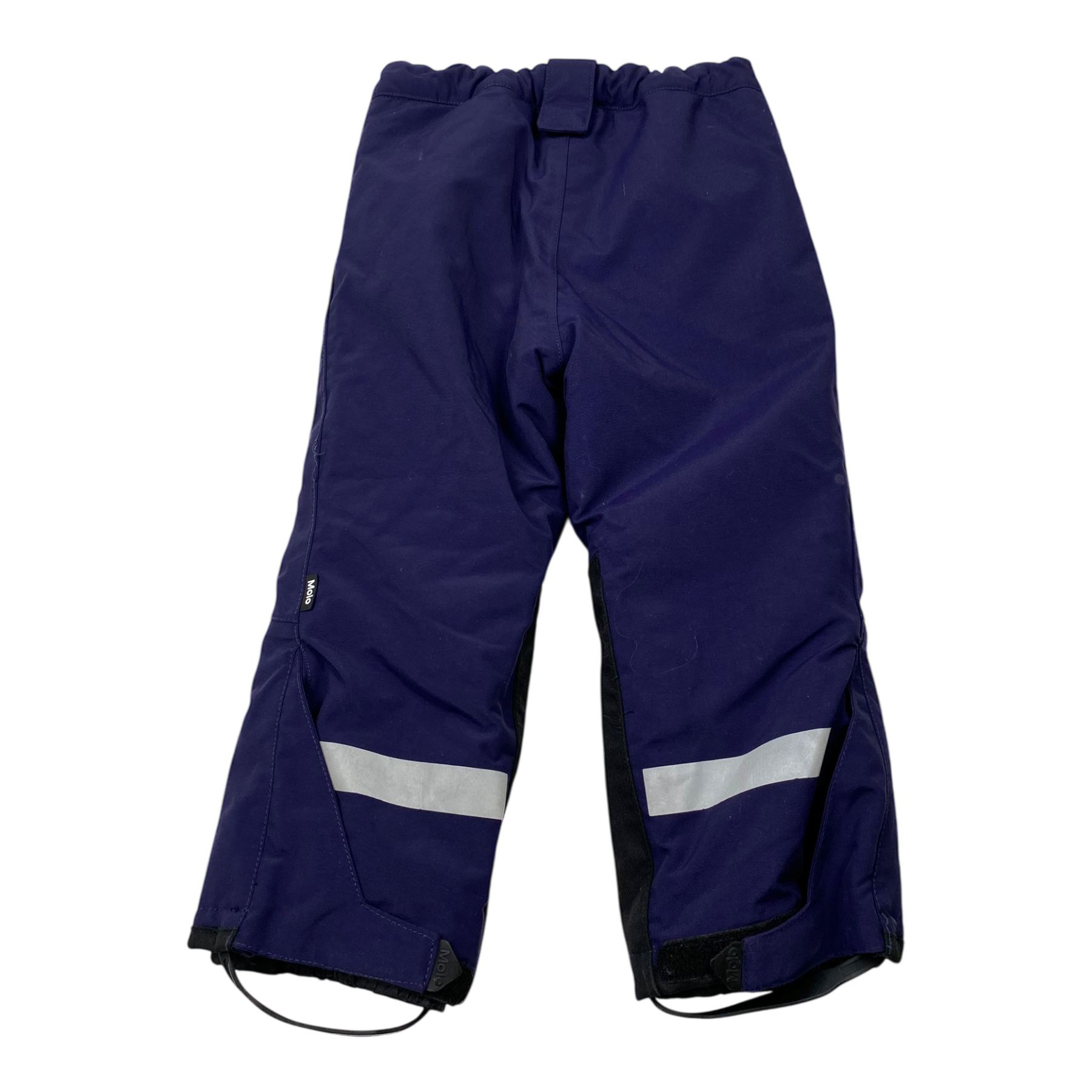 Molo jump pro winter ski pants with an adjustable waist and cuffs, rubber loops that can be put under shoes, reflectors in the back, snow flaps and two side pockets. Originally water and wind proof.