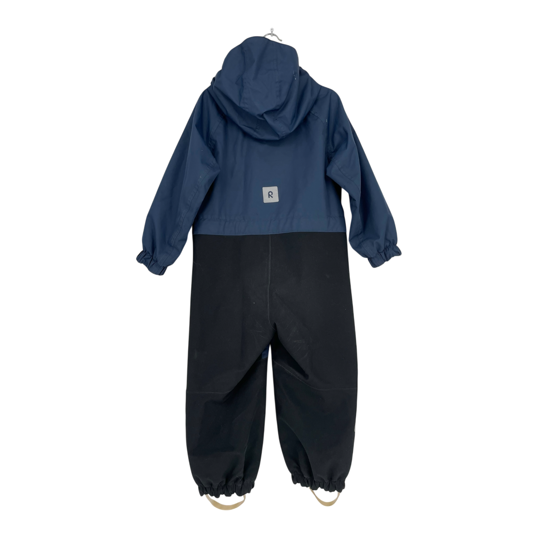Reima Kapelli midseason overall is originally waterproof up to 10 000mm water column. All seams are sealed waterproof and material is very durable. The overall has zipper pockets, detachable hood and detachable foot loops.