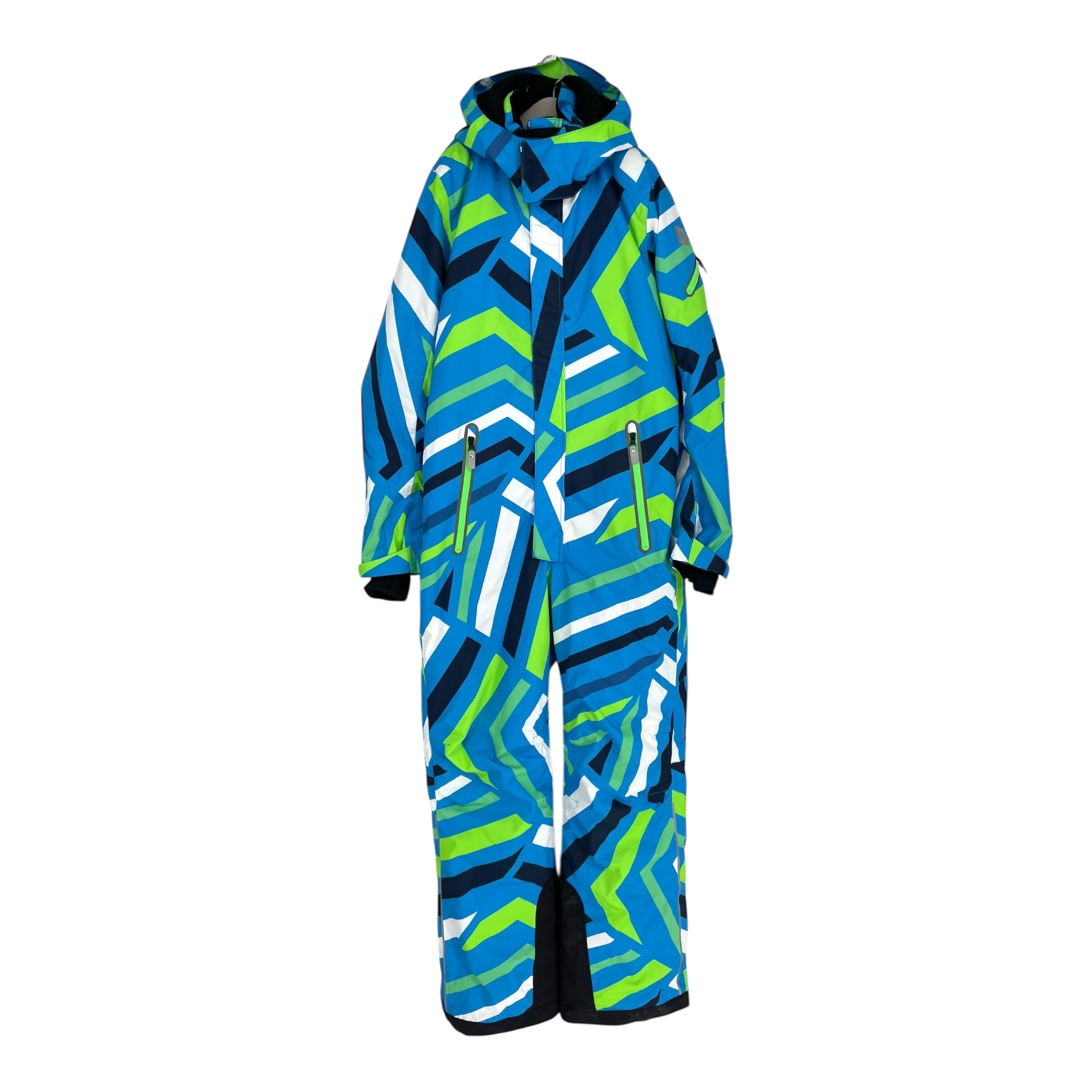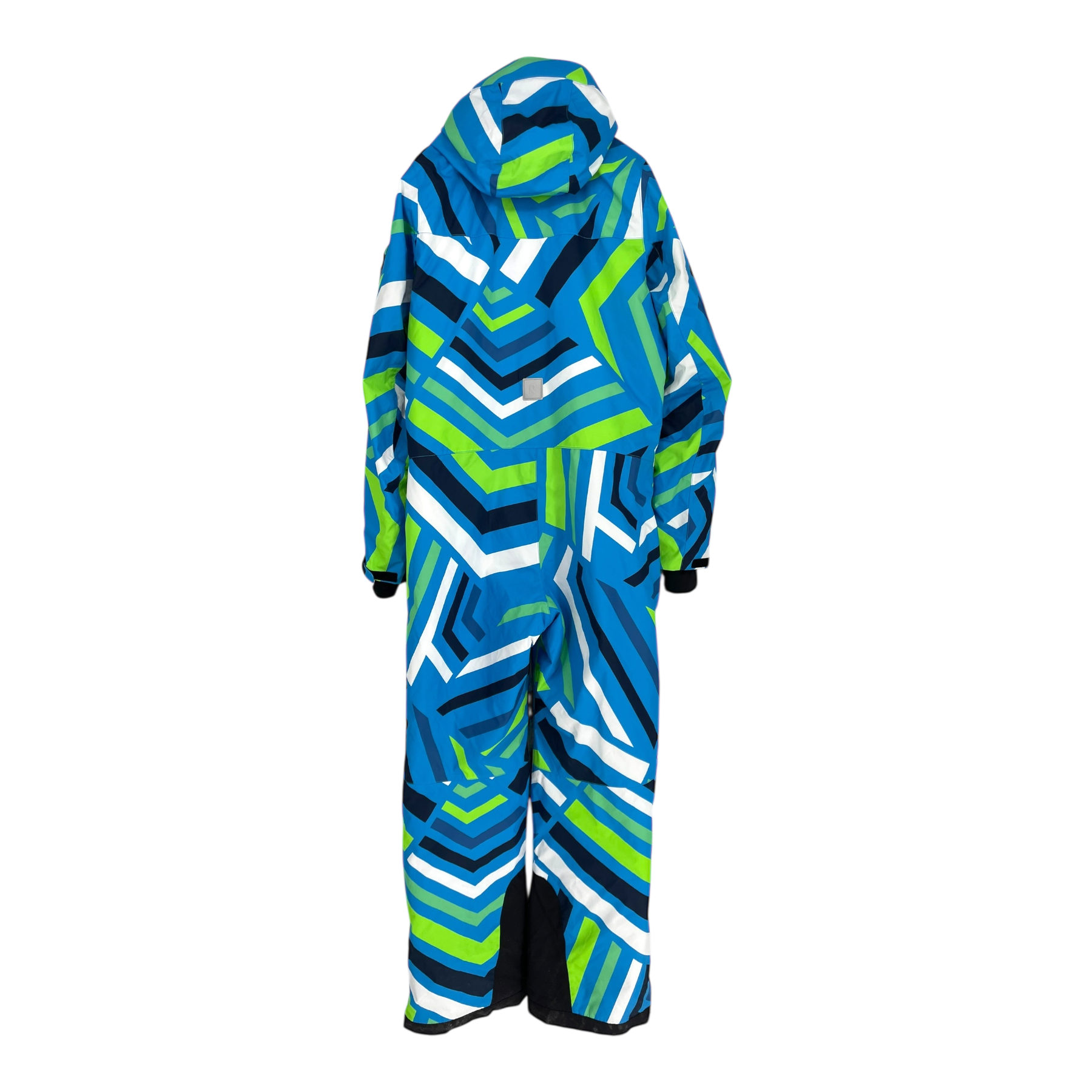 Reima Reach winter overall with detachable hood, zip pockets on sides, adjustable elastic on the waist, and reflective details. The material is originally waterproof up to 10,000mm water column, and the seams are sealed. There is durable reinforcements on legs for long-lasting use, snow lock on the leg ends, and adjustable cuffs with inner lycra cuffs for added warmth.