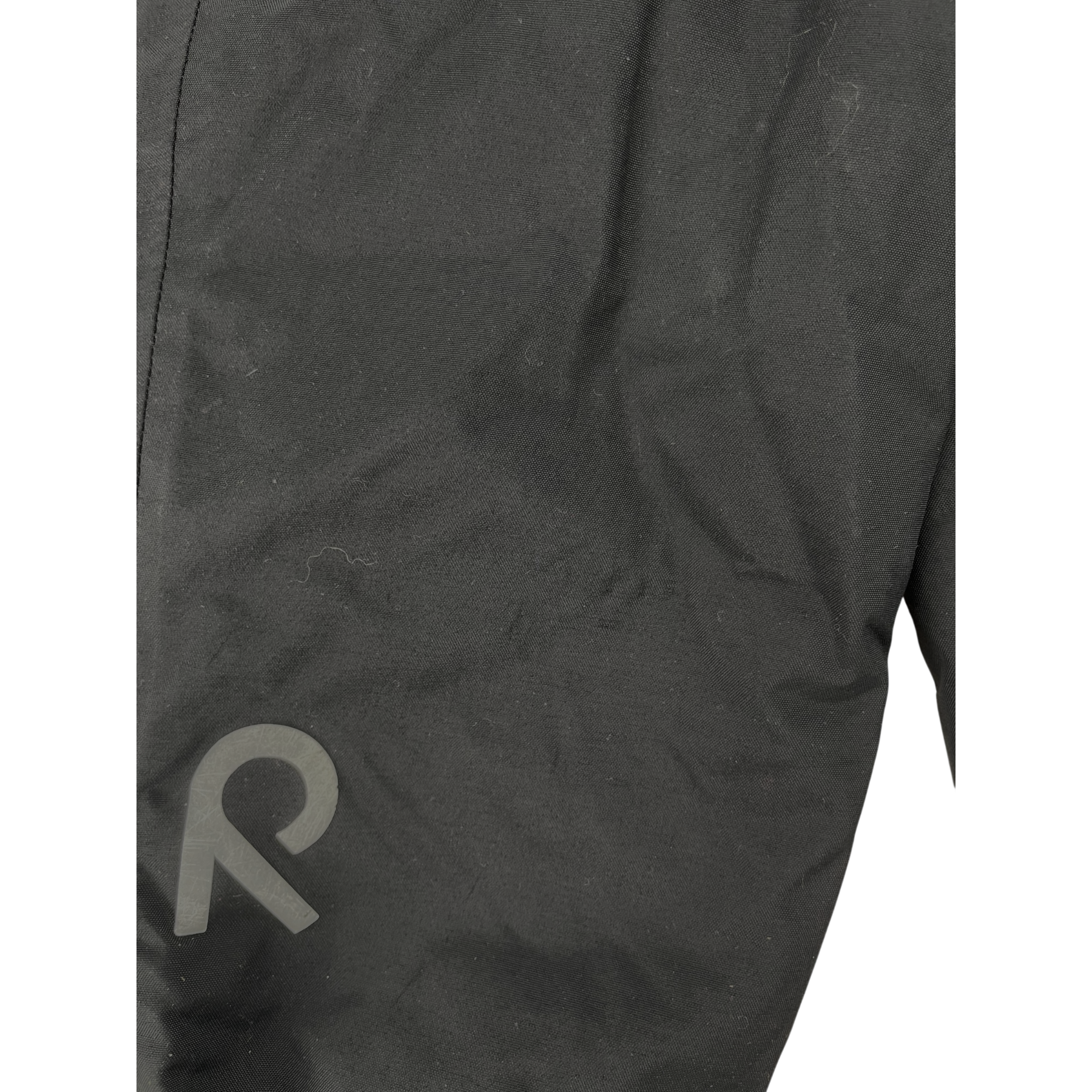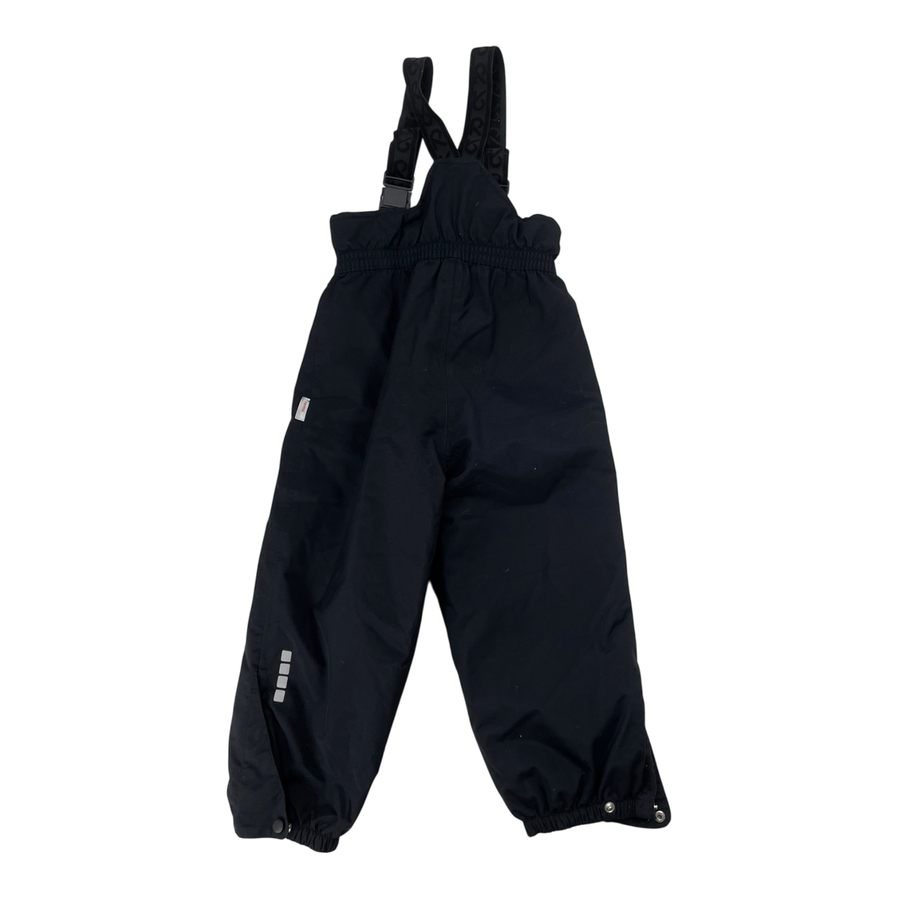 Reima padded winter outdoor pants with adjustable elastic suspenders and elastic waist. Long zip closure, durable foot loops and reflective details. In this item the foot loops are missing.