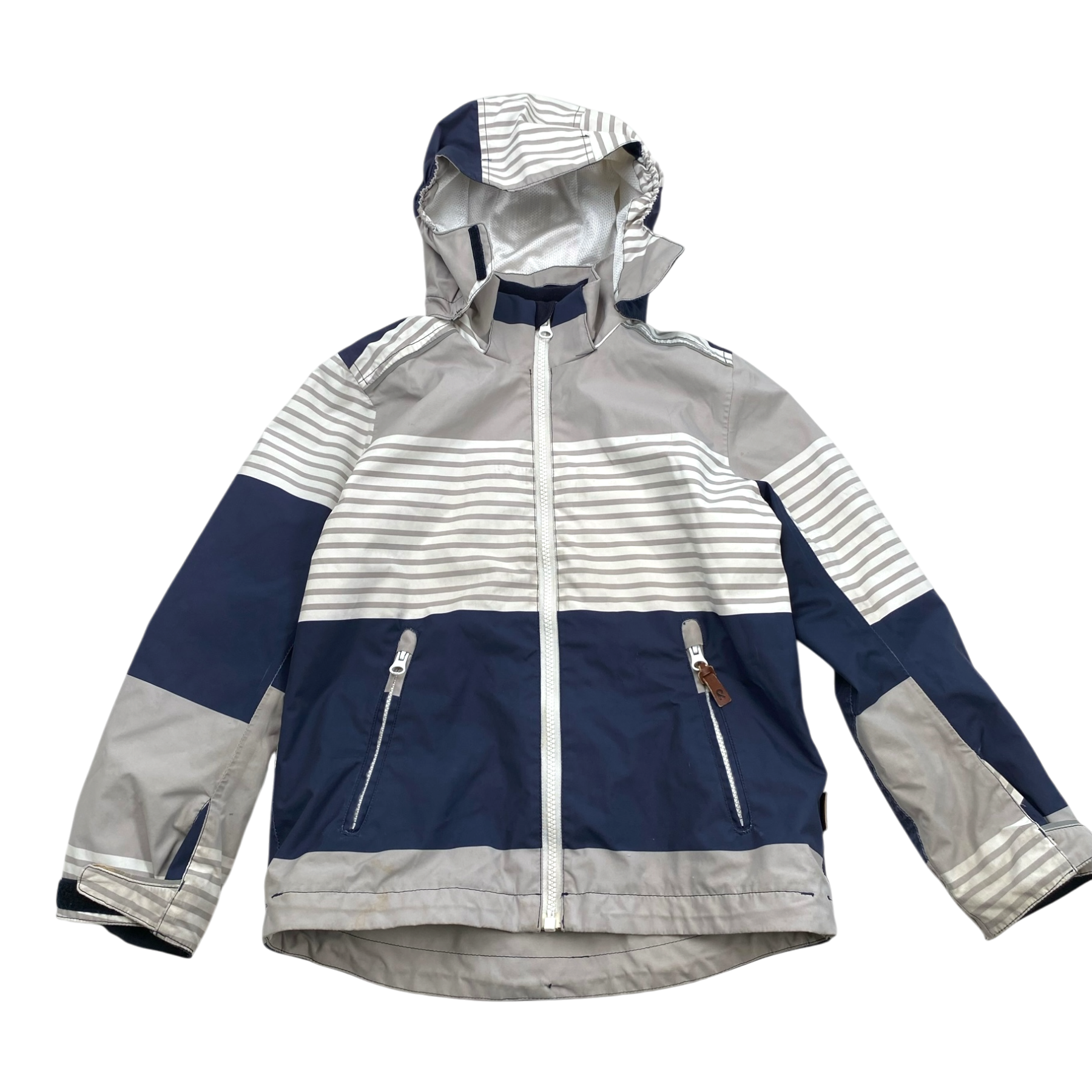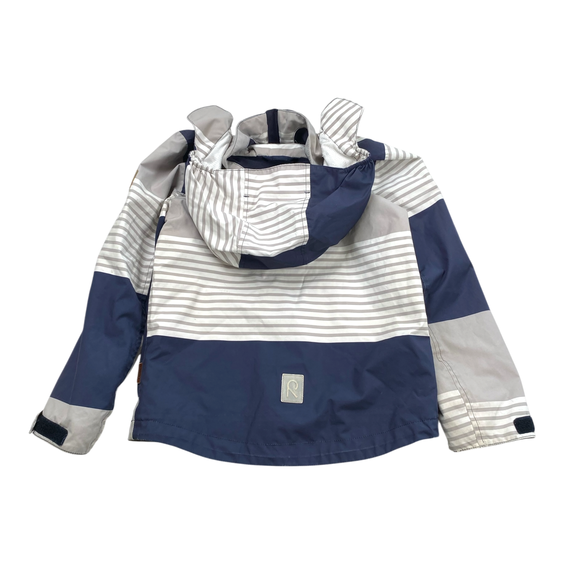Reimatec midseason jacket with detachable hood and two zip pockets on front. The jacket is made from a durable technical material that's originally water- and windproof, up to 8,000mm water column.