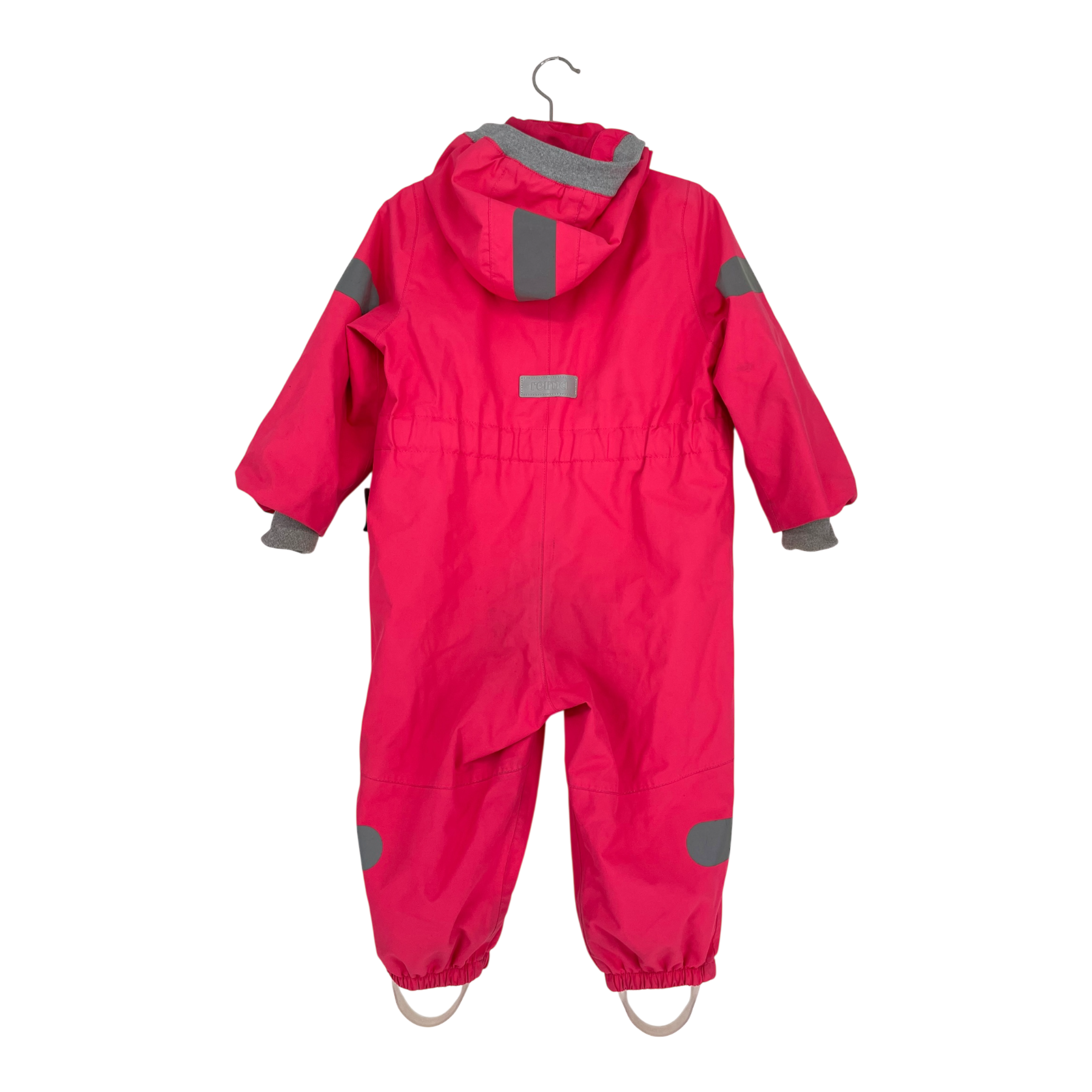 Reima Mynte midseason overall with side pockets, a removable hood and a zipper closure in the front.