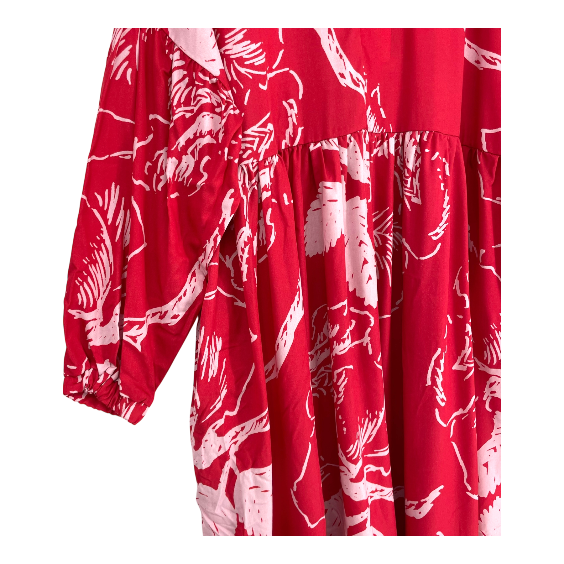 Makia x Moomin Bouquet dress is woven flowy dress with puff style long sleeves and with a scrunching on the waist.