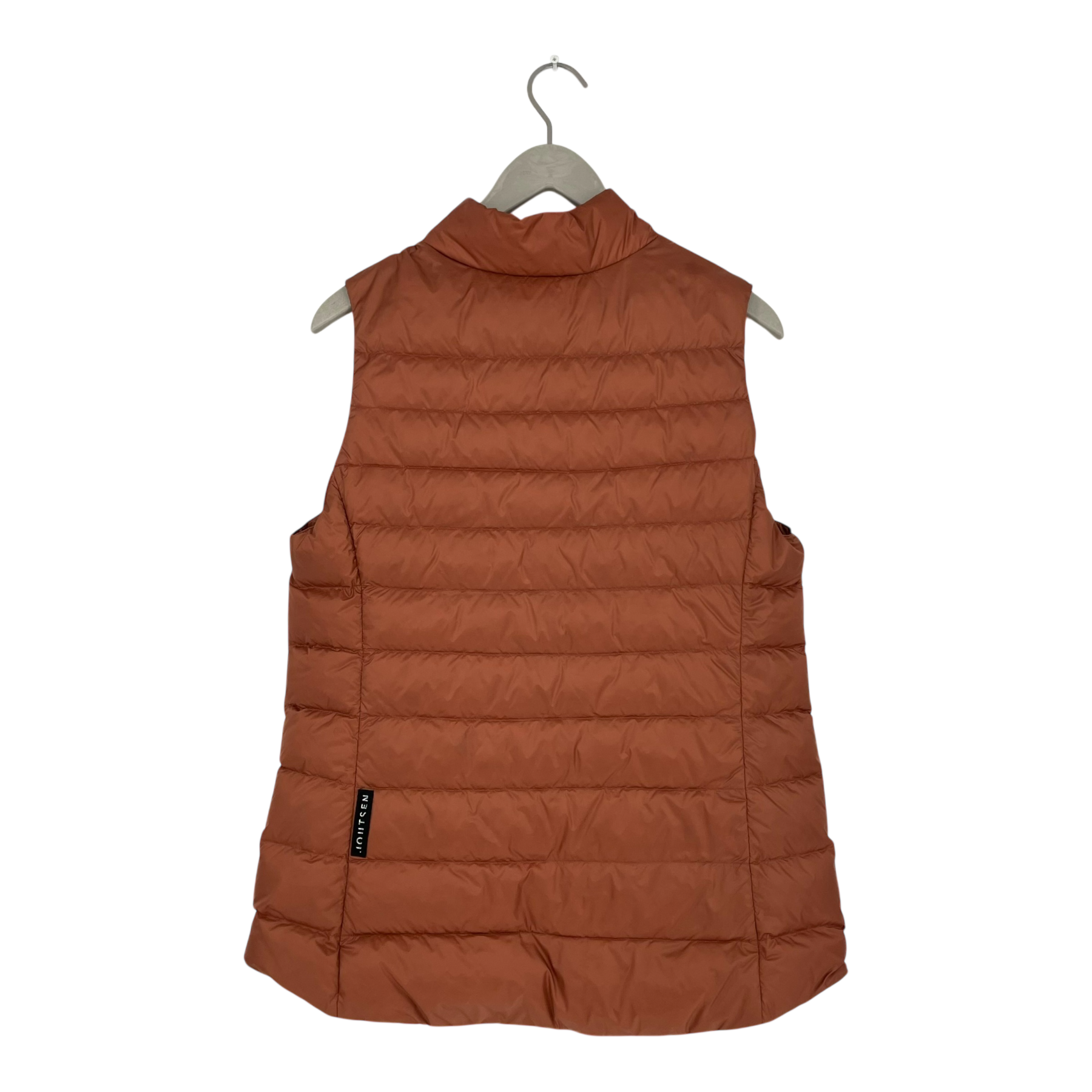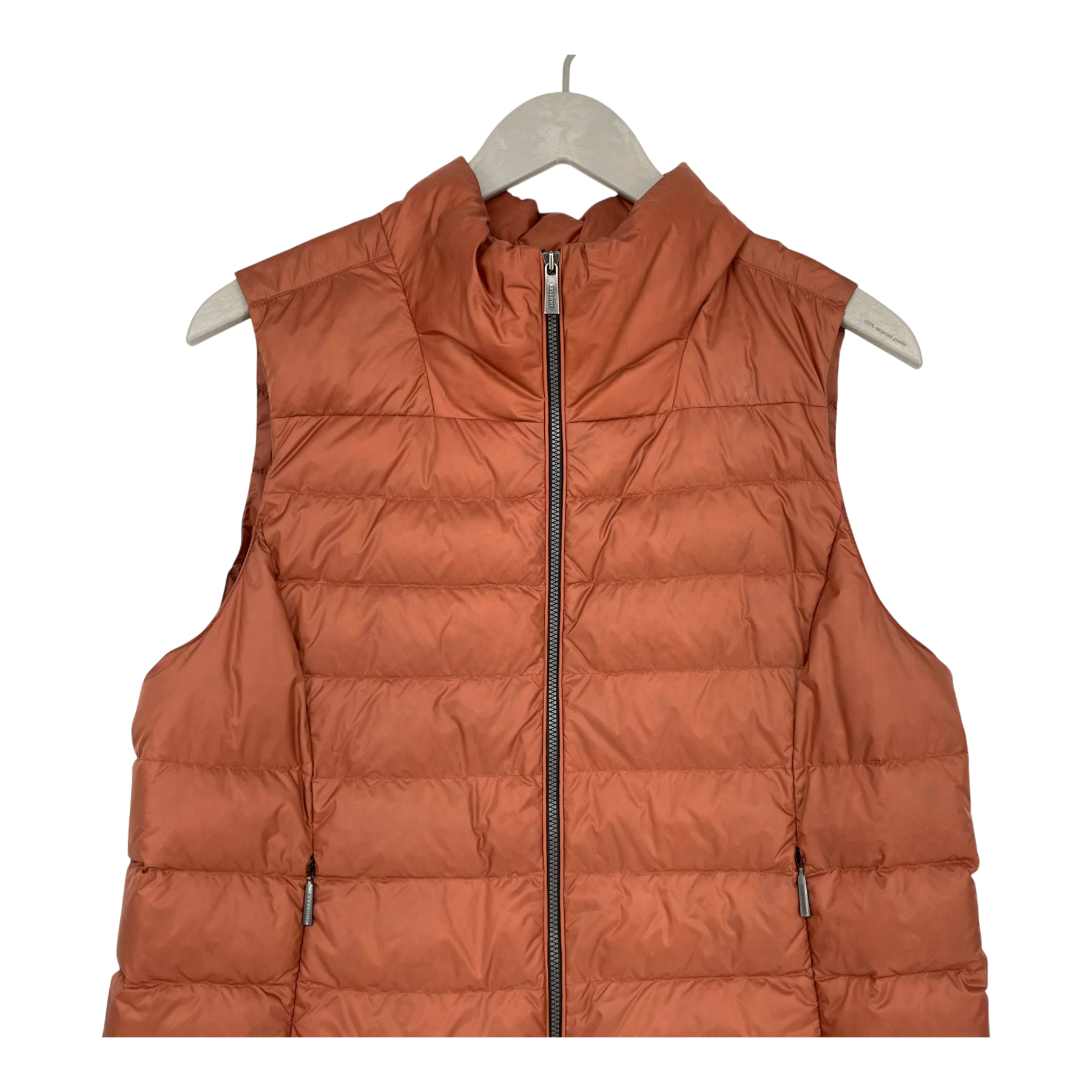 Joutsen lady vest is light and provides lovely extra warmth for both outdoor and indoor use all year around. The vest can be worn over a shirt or used as a warming layer under or over another coat. The princes seams ensure that the vest fits well and the longer hem in the back helps to keep the lower back warm. Front pockets have concealed zippers and double-slider fastening zipper adds comfortability and daily functionality. There is a drawstring on the waistline inside the vest for better fit.