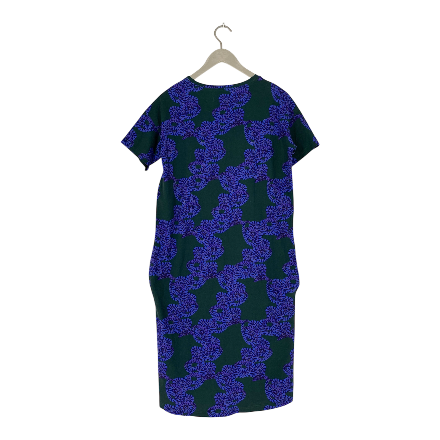 Vimma t-shirt dress in green and blue abstract print with side pockets