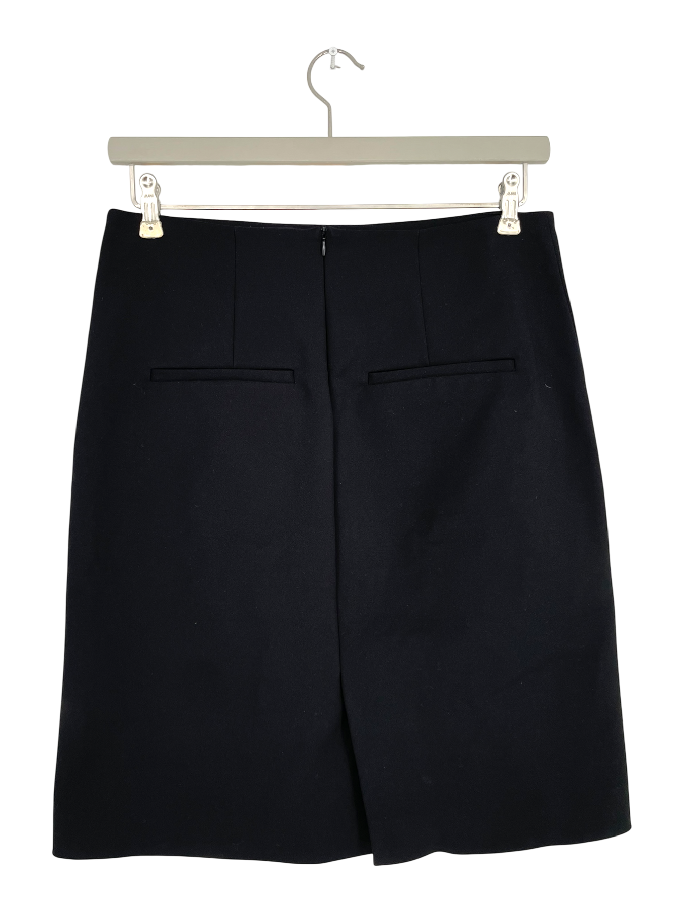 Tiger of Sweden Violina lined woven skirt with fake pockets on the back. Skirt has zipper and short slit on the back side.