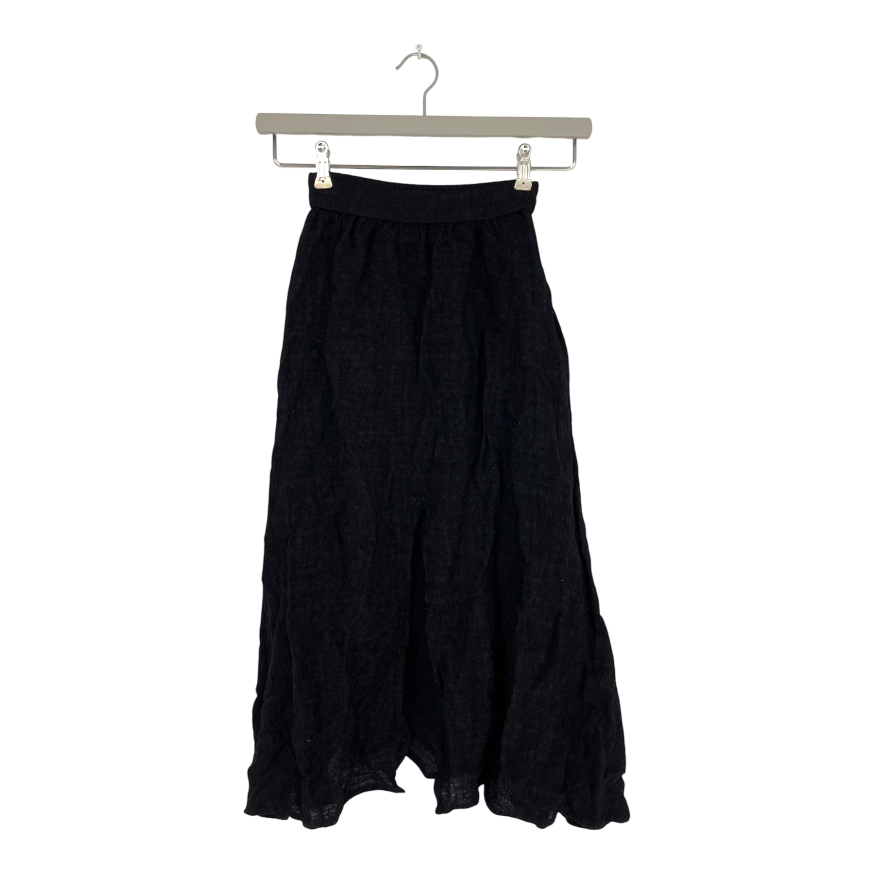 Uhana women's flowy skirt with a small slit in the front and pockets on the side.