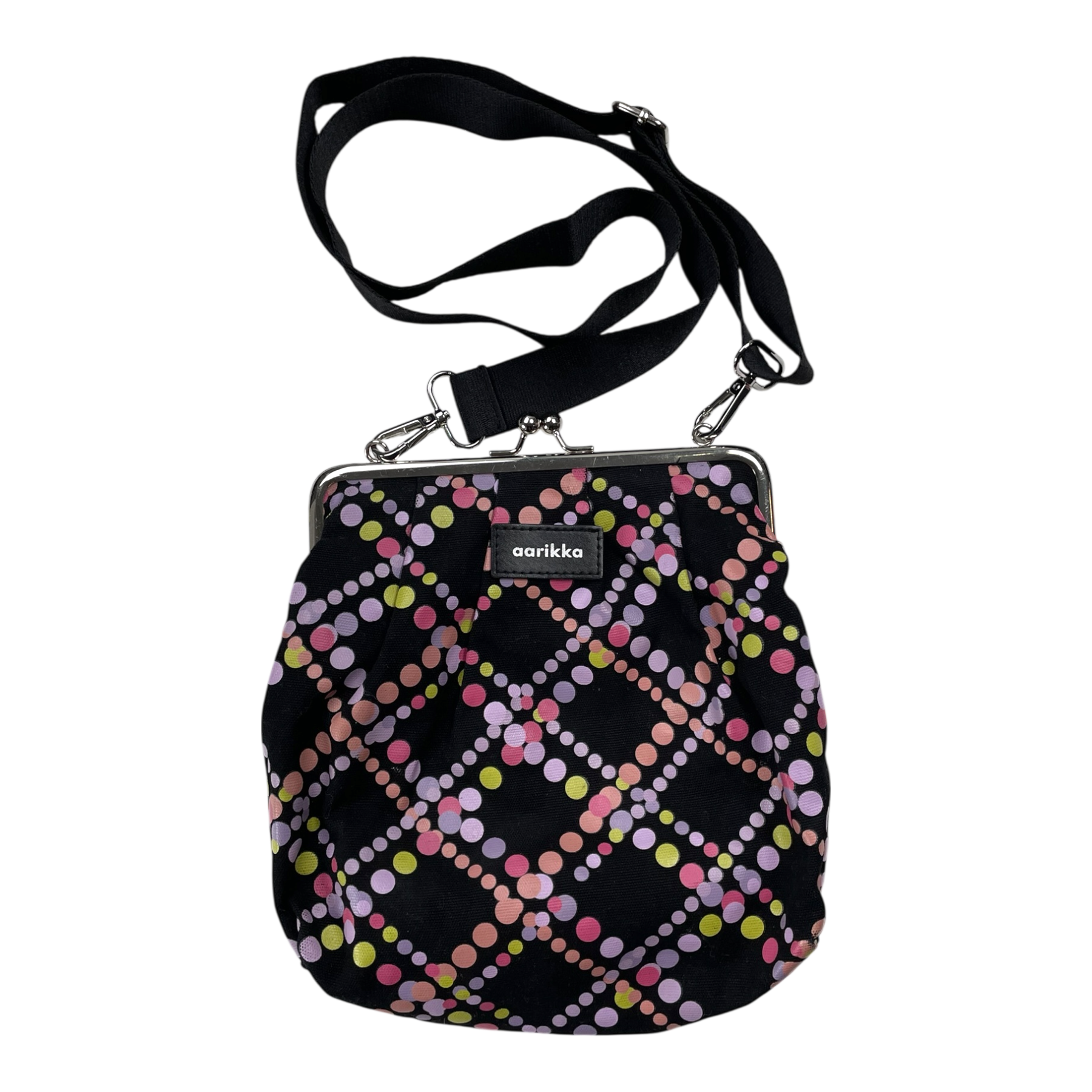 Aarikka women´s clasp shoulder bag in dot print. There is a thick adjustable and removable strap.