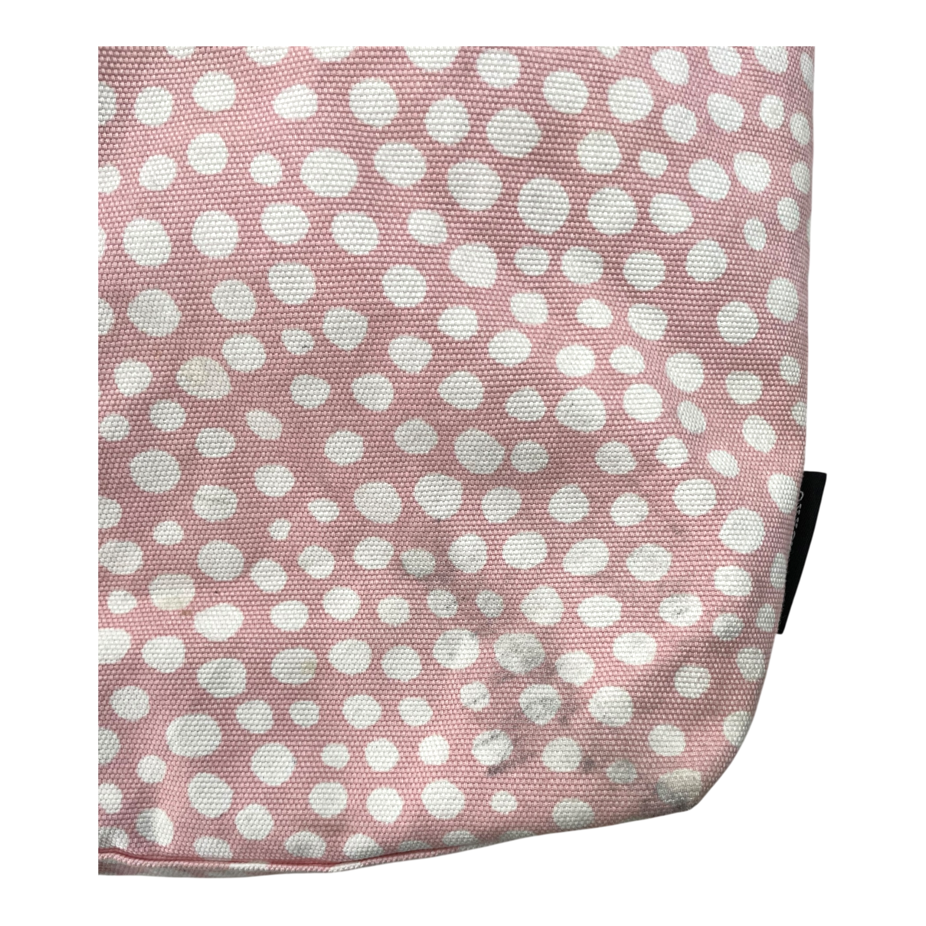 Marimekko bag made of durable cotton canvas. The bag closes with a zipper. Inside, there is a clean black lining and one interior pocket. This item has multiple stains and discoloration, as shown in the pictures.