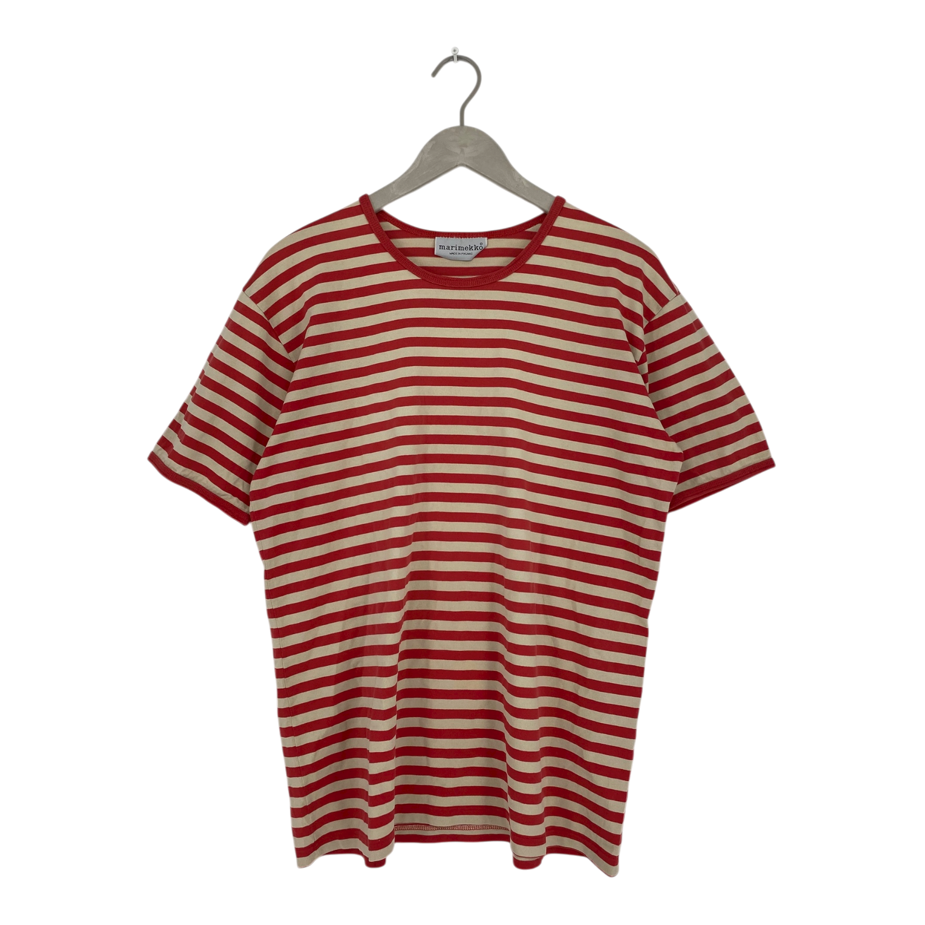 Marimekko classic vintage t-shirt in the Tasaraita design. Small stains around the right armpit, the original color has also faded a bit.