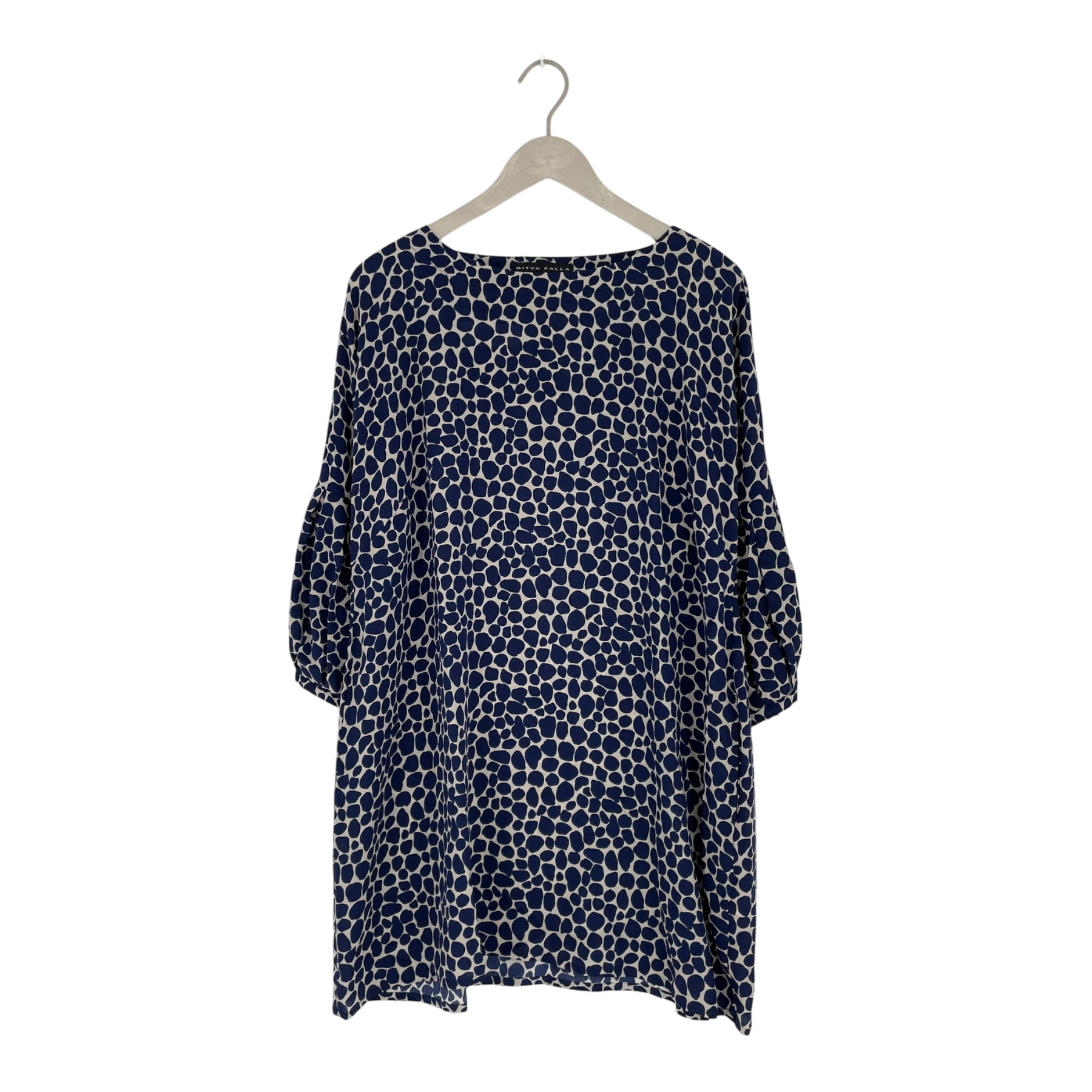 Ritva Falla woven silk shirt with pleat detailed half sleeves and round collar.