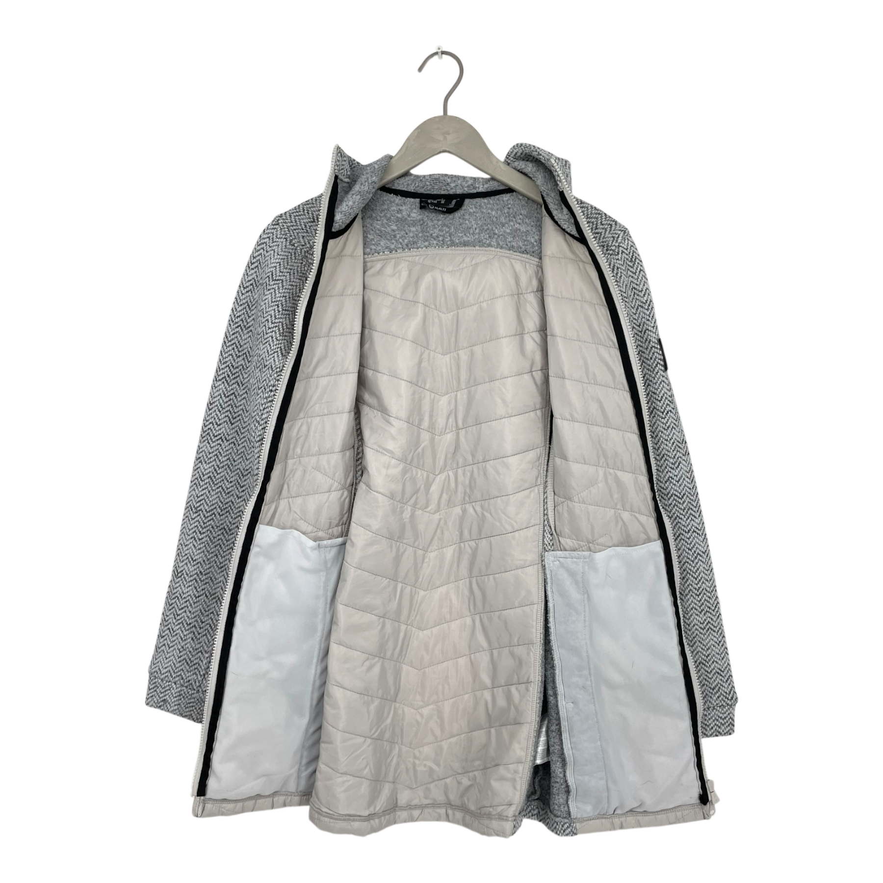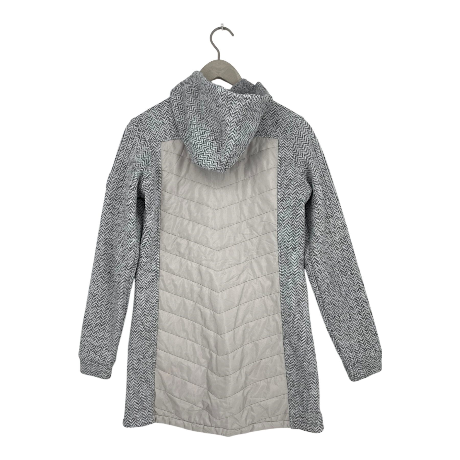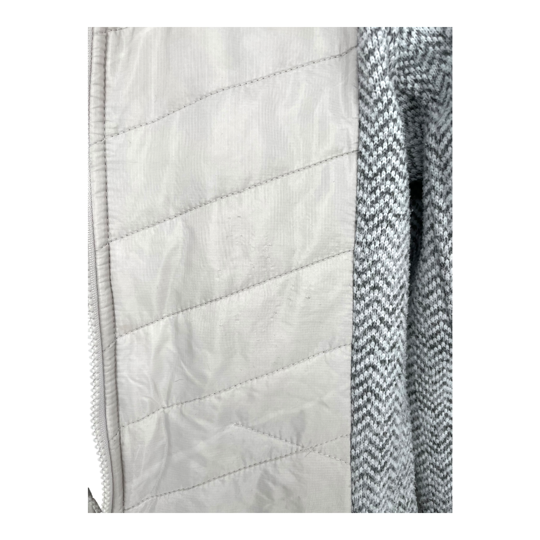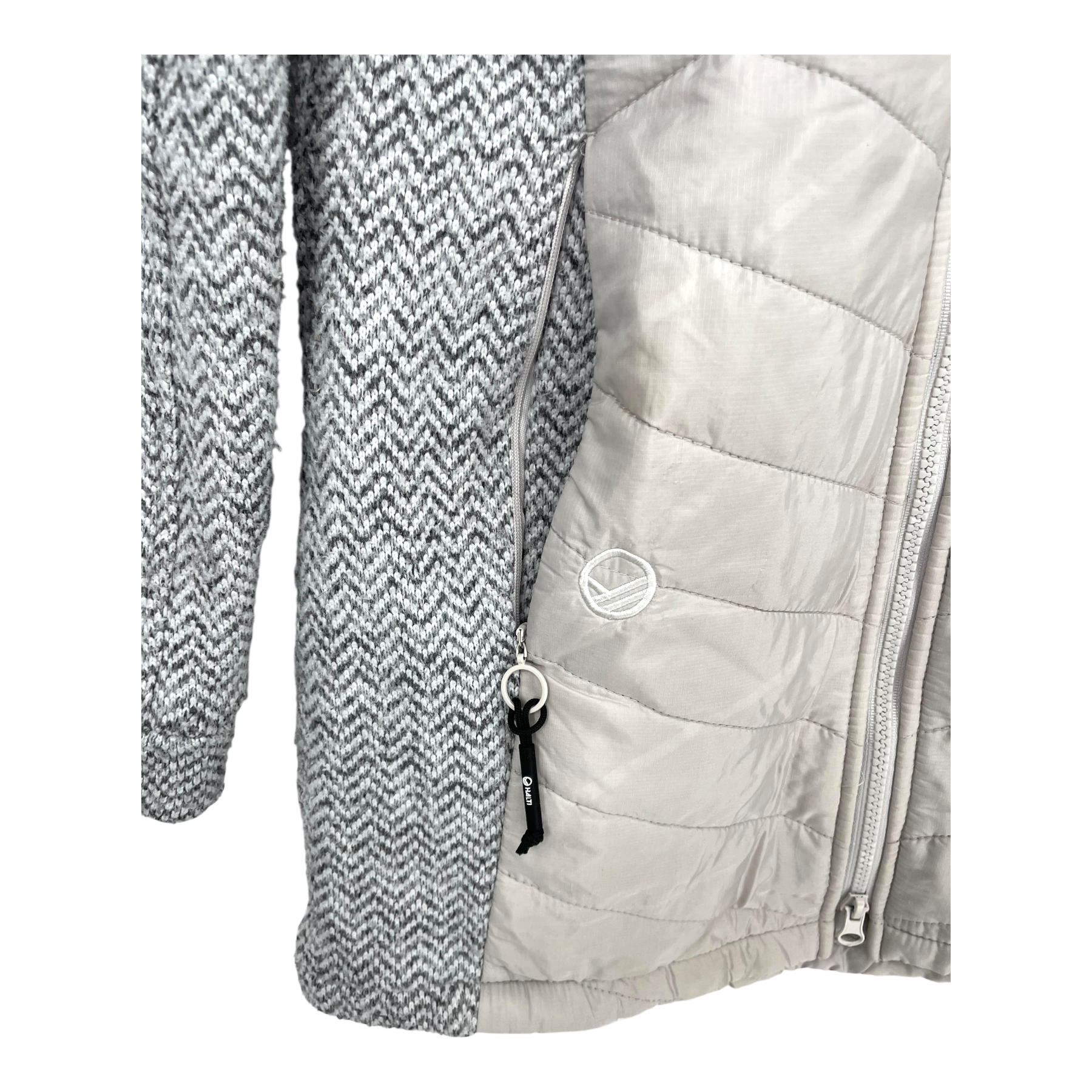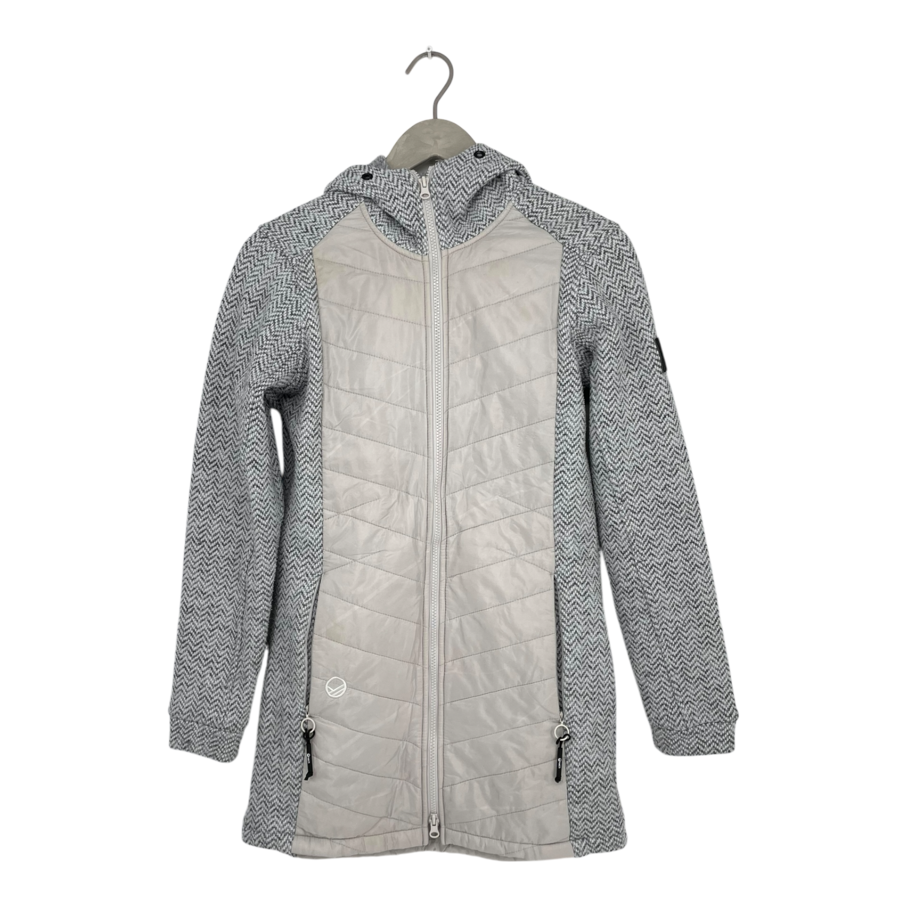 Halti women's jacket. This lightweight jacket has padded areas in front and back. Zipper closure and side pockets. Sleeves, hood and sides are knitted fleece.