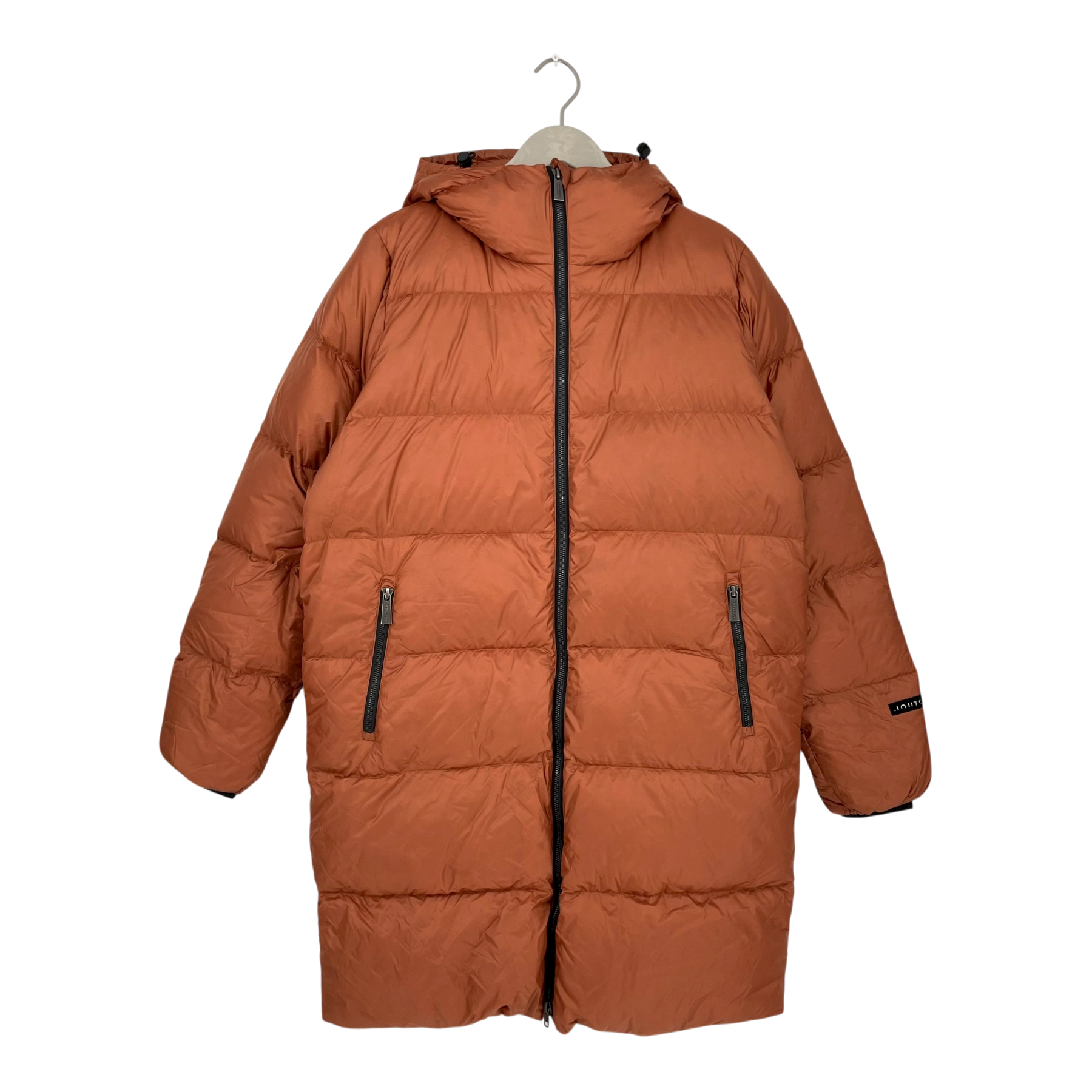 Joutsen Silvia jacket is a down jacket perfect for the colder weathers. There a large horizontal stitching and two front pockets with zippers. The double-slider fastening zipper adds comfortability and daily functionality in the front. There is a large warm adjustable hood that can be worn up or down according to weather and the sleeves can be rolled up for a better fit.