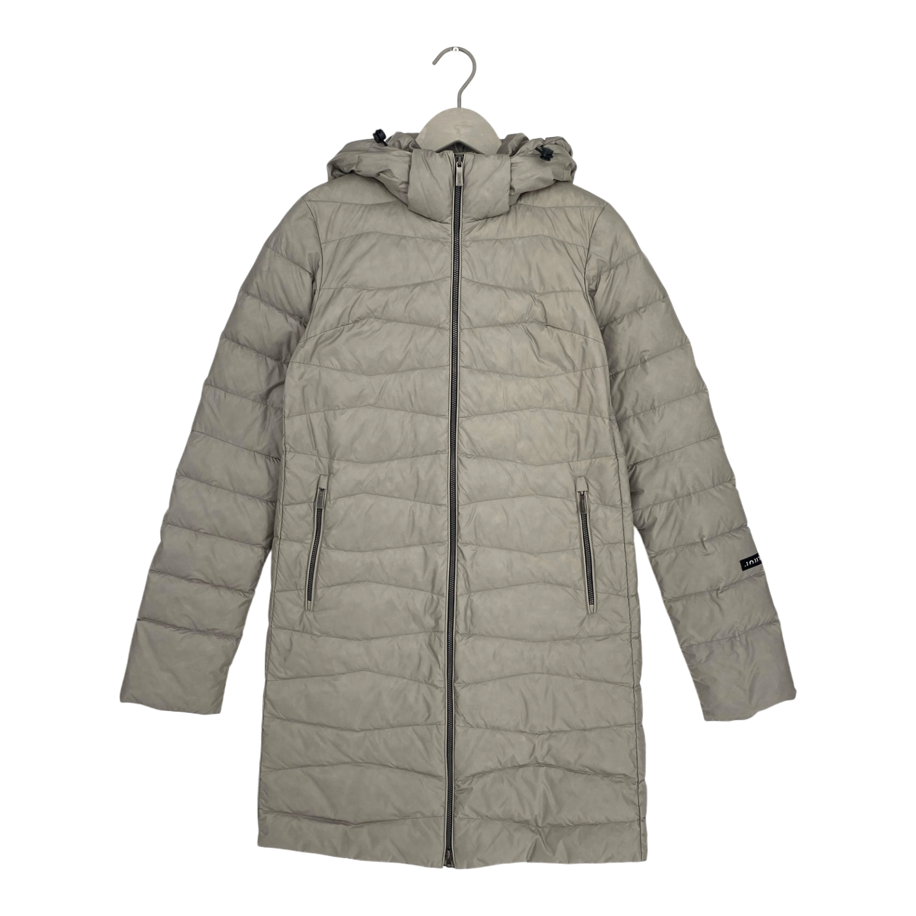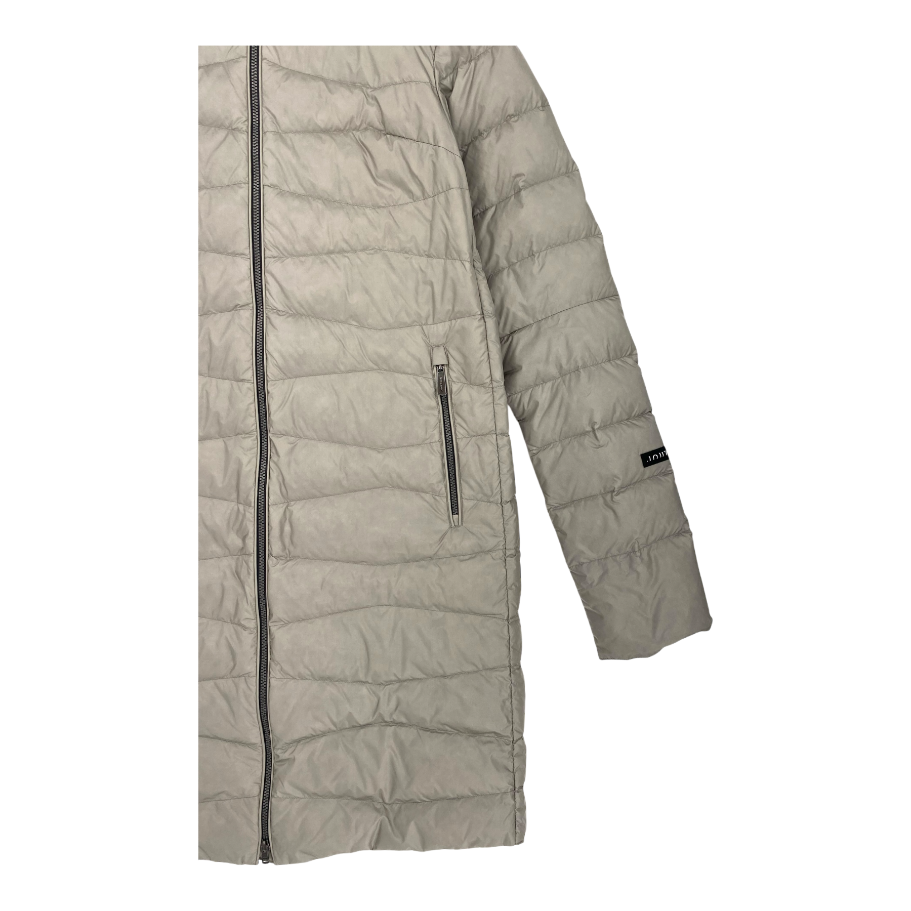 Joutsen Kenno jacket is a light down jacket with a honeycomb stitching. The jacket has a standard fit that lightly conforms to the contours of the body. There is two side pockets and a double-slider fastening zipper in the front that adds comfortability and daily functionality. The stand-up collar protects the neck, the hood can be detached with buttons and the sleeves can be rolled up for a better fit.