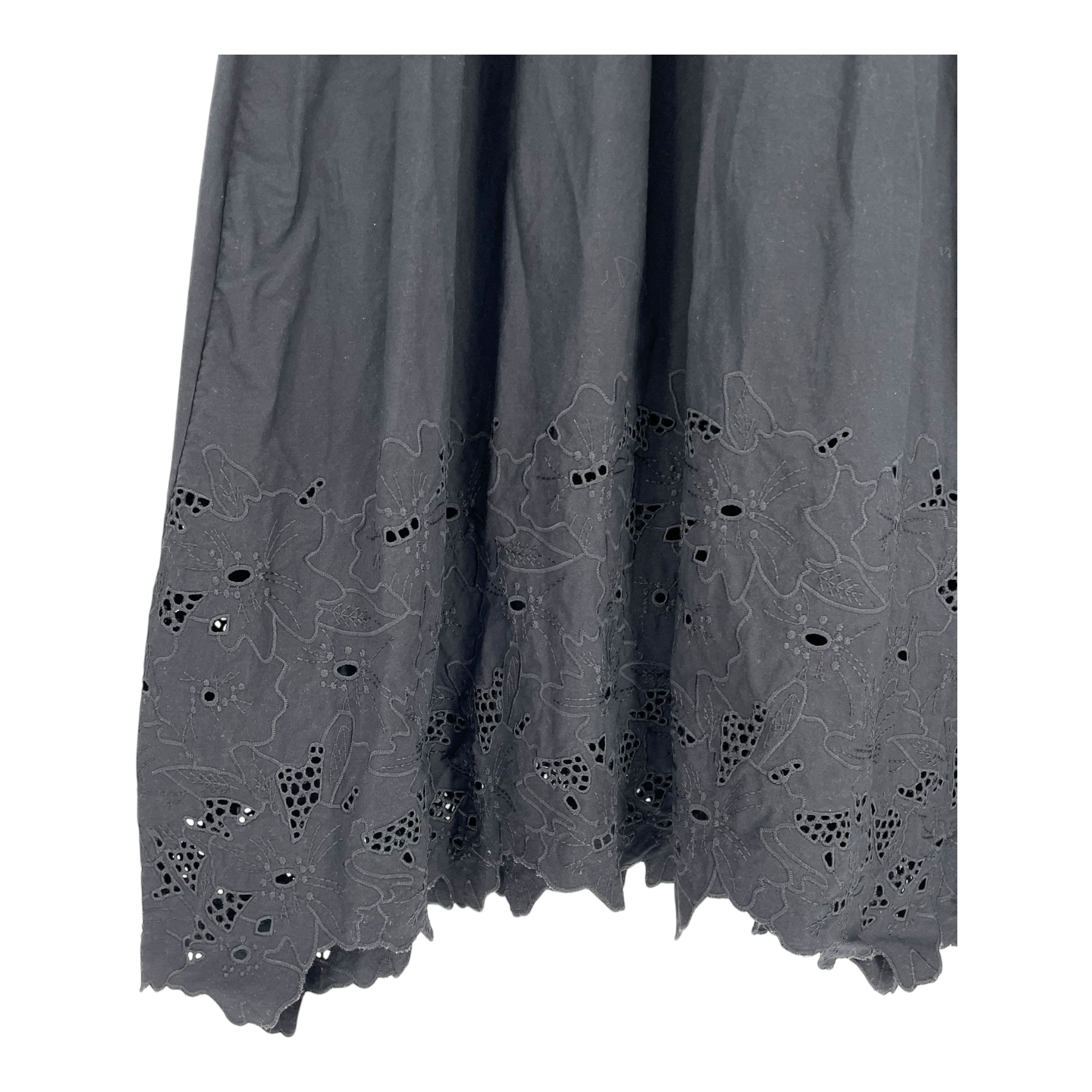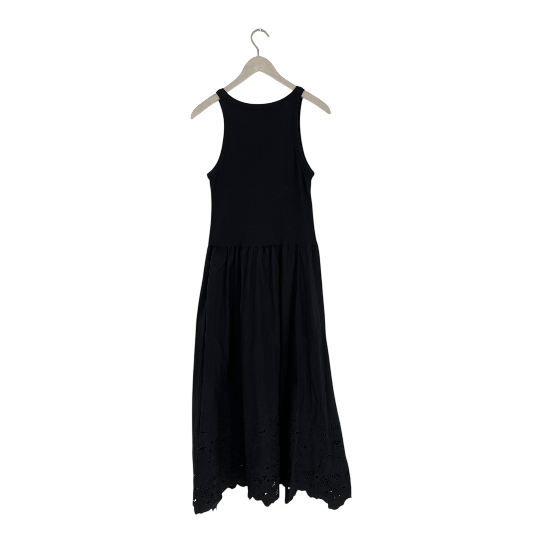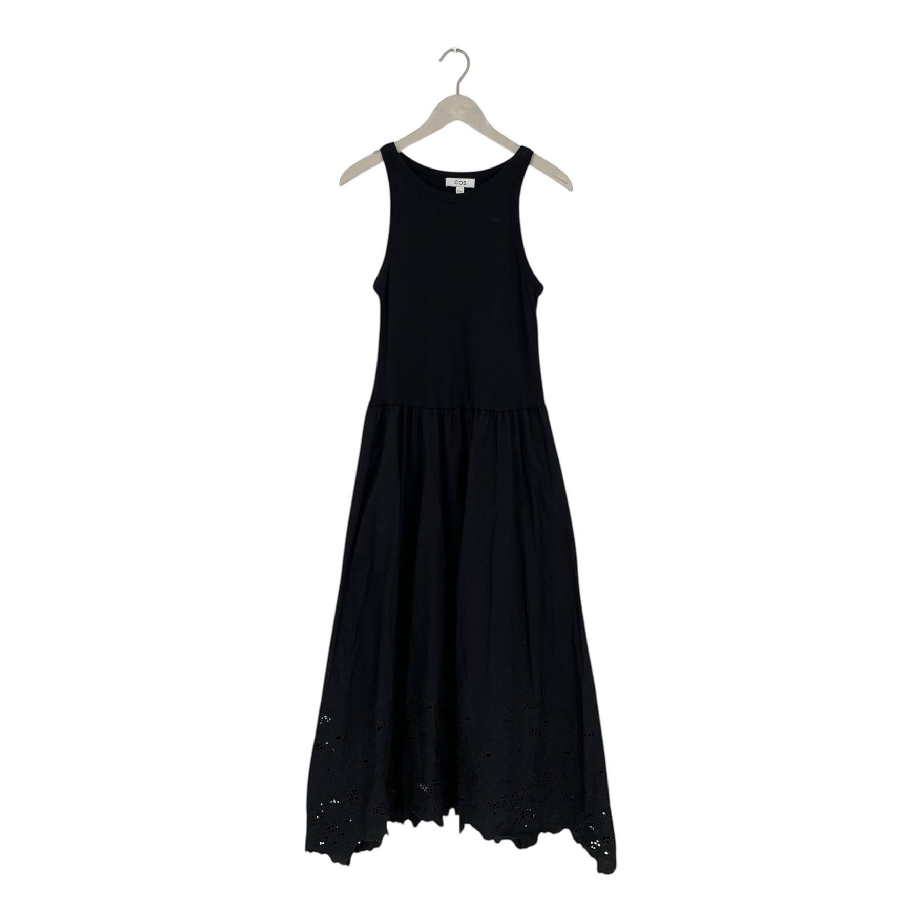 A COS women’s maxi dress featuring a soft jersey top and a woven fabric skirt. The dress has a full maxi length, and the hem is finished with a beautiful lace detail.