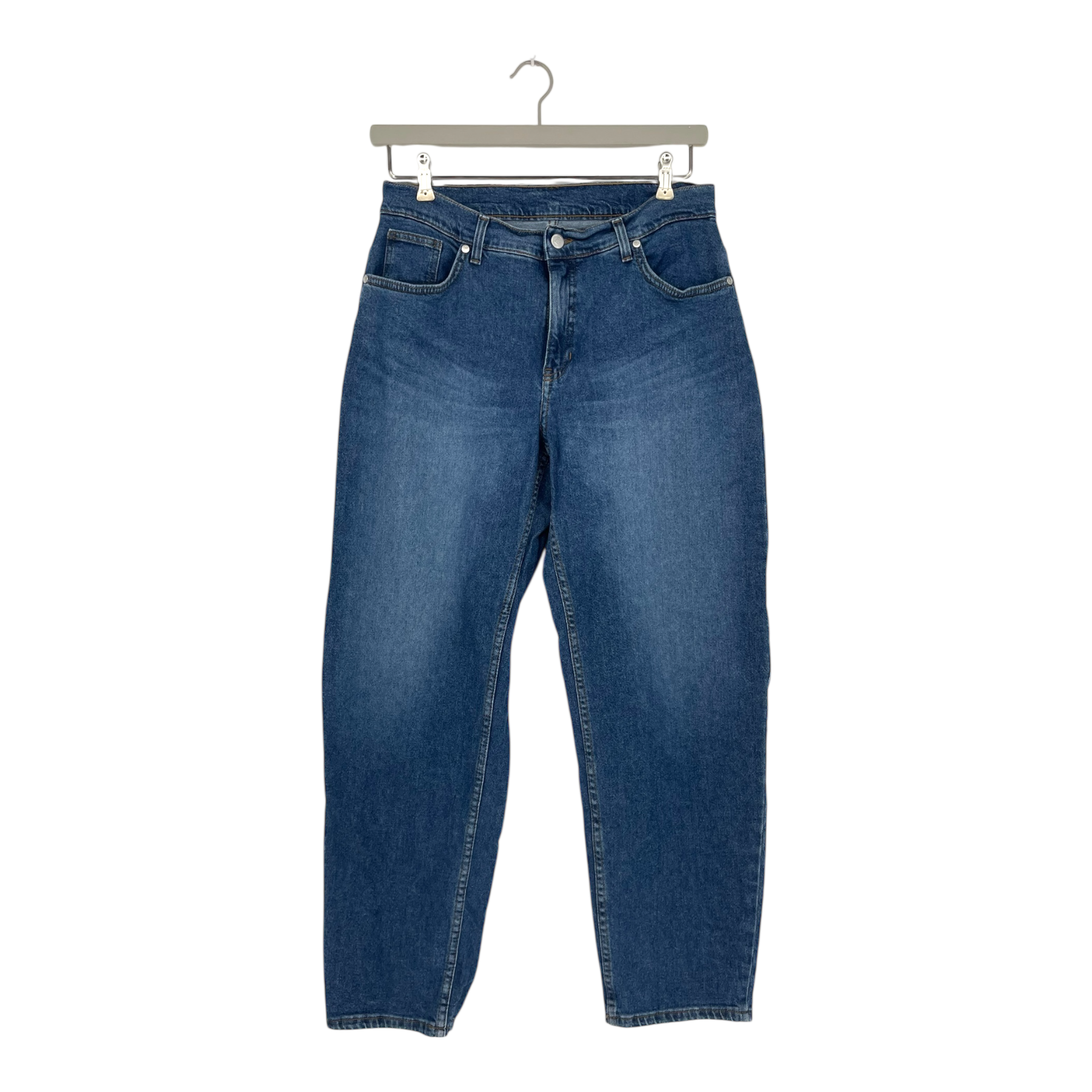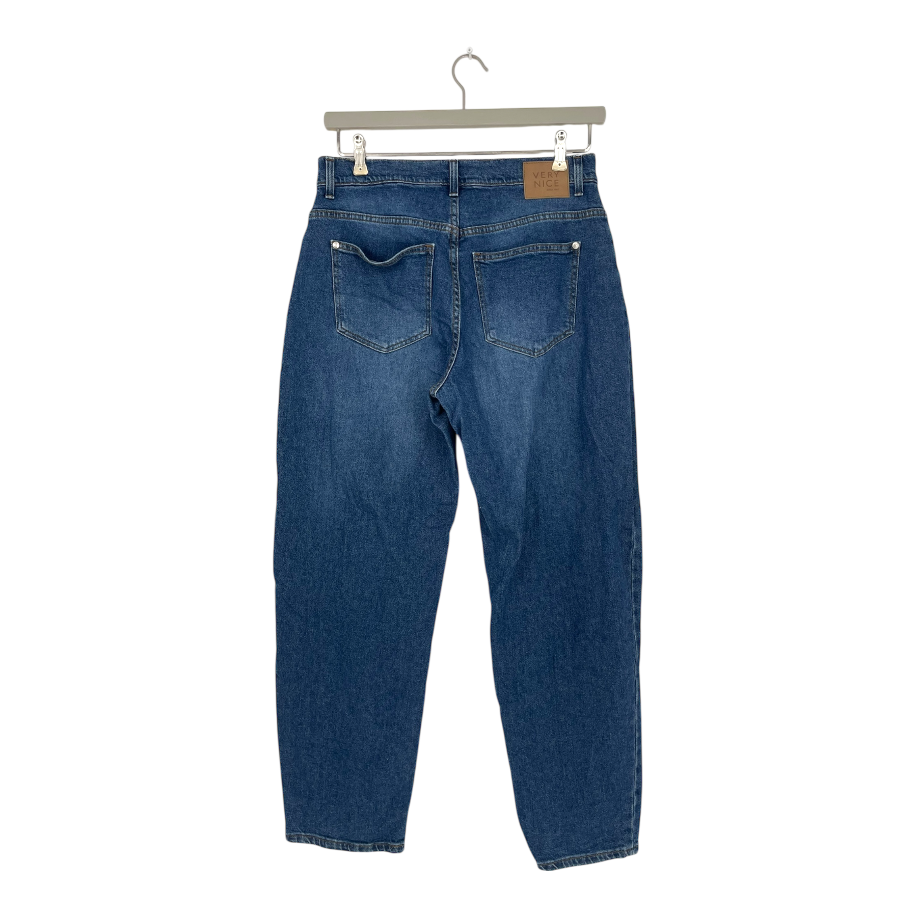 Very Nice Amy mom jeans. A relaxed yet stylish denim essential for everyday confidence. The regular fit and classic mom jeans silhouette offer comfort and a flattering shape. Designed with a standard waistline for an easy, natural fit. The barrel leg, gently tapered towards the hem, adds a modern twist to a timeless favorite. A versatile style that moves effortlessly from day to night.