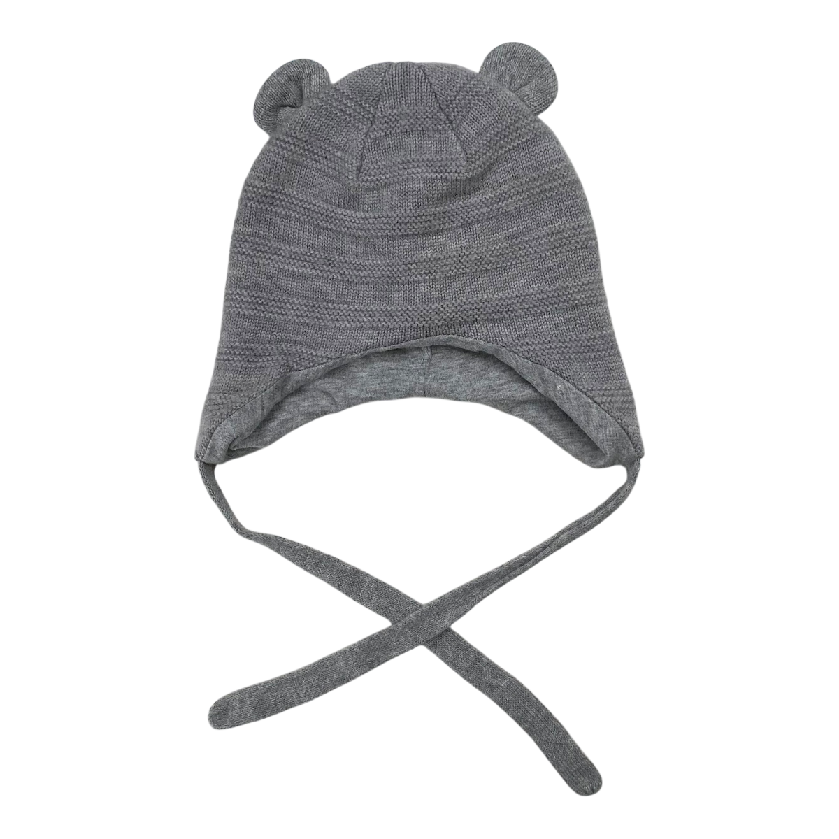 Metsola beanie with bear ears and strings to tie with.