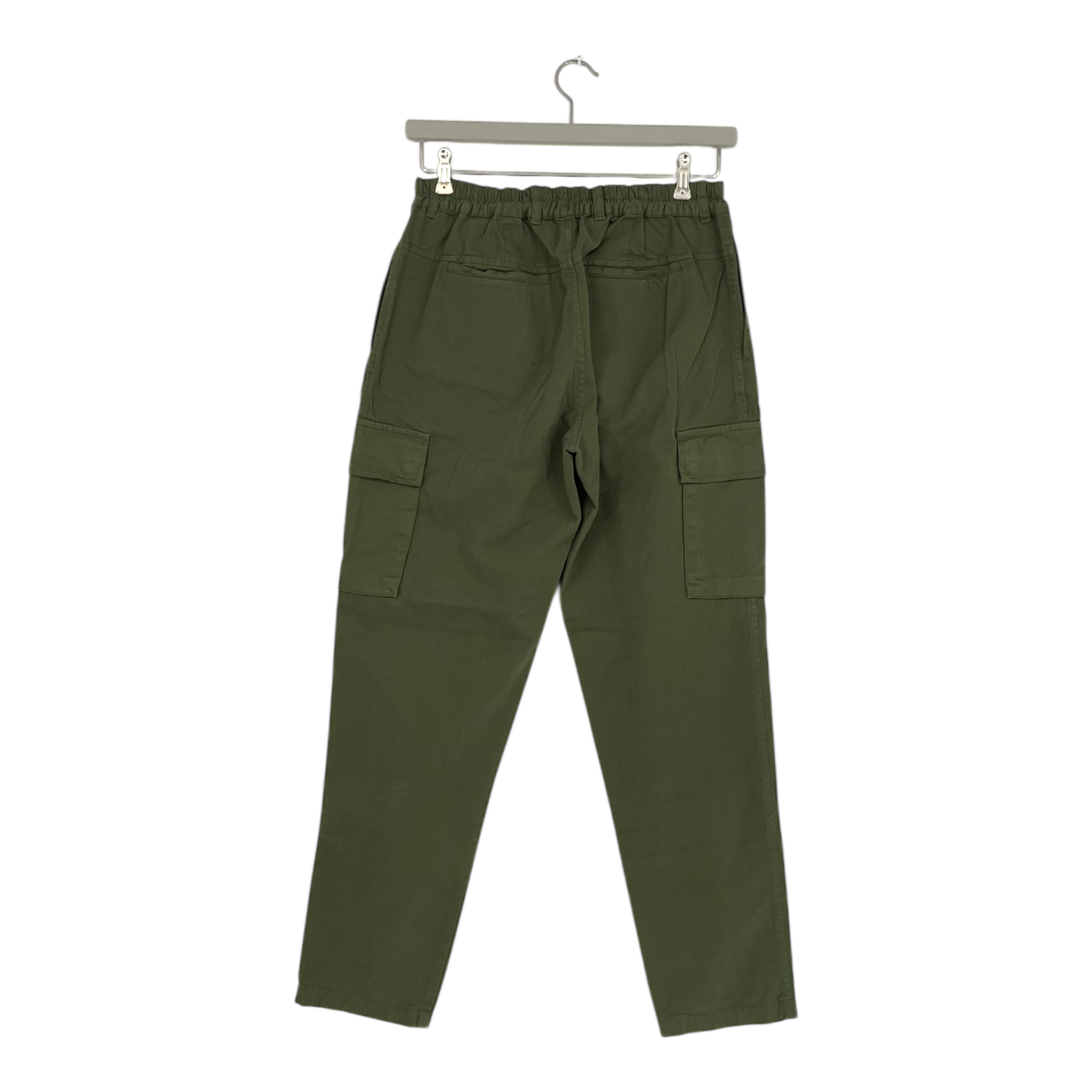 R-Collection Cargo Pants – These cargo pants feature an elastic waistband with a button closure for a comfortable fit. They have two pockets at the front and back, plus two additional pockets on the thighs.