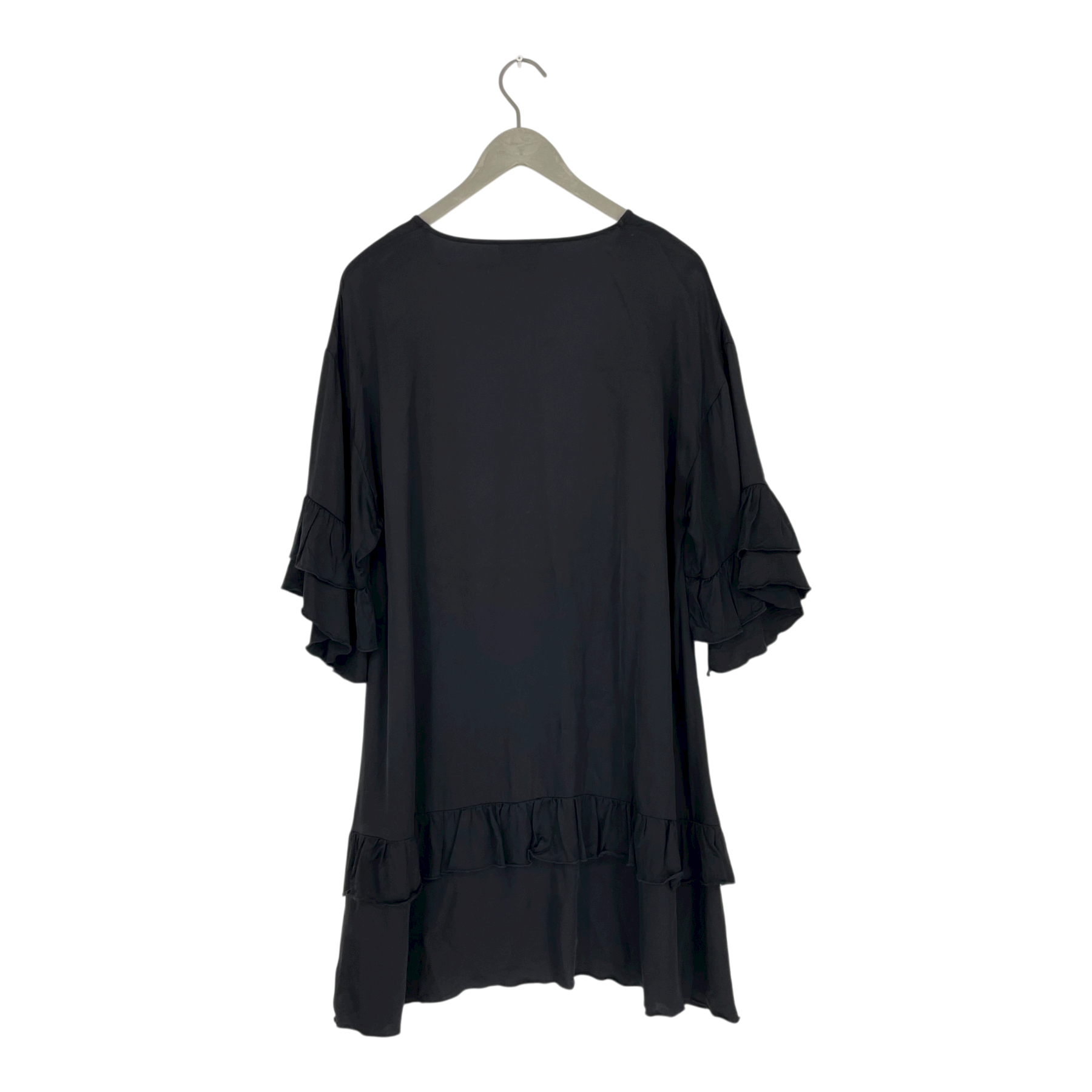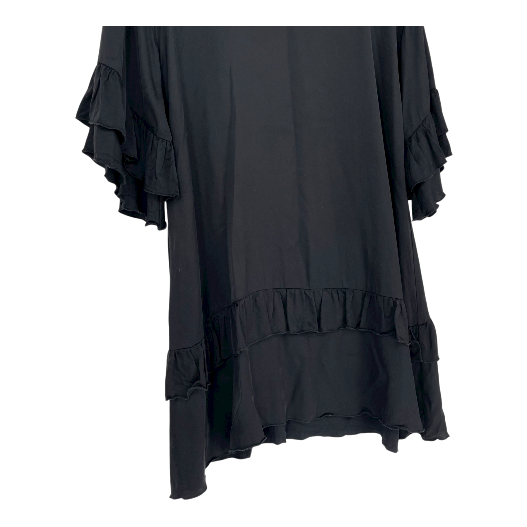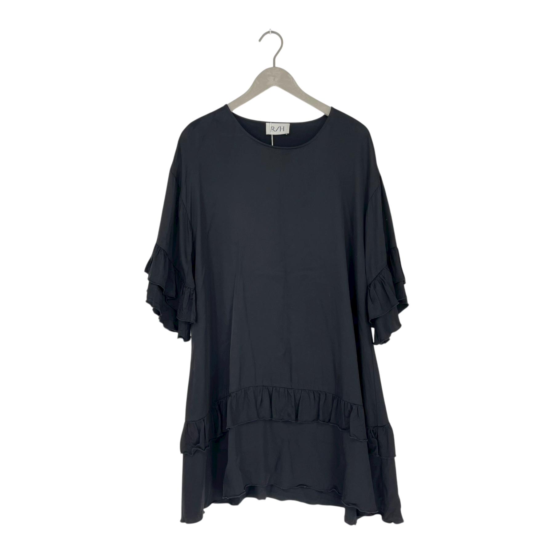 R/H Studio short-sleeved flowy dress with playful frill details on the sleeves and hemline.
