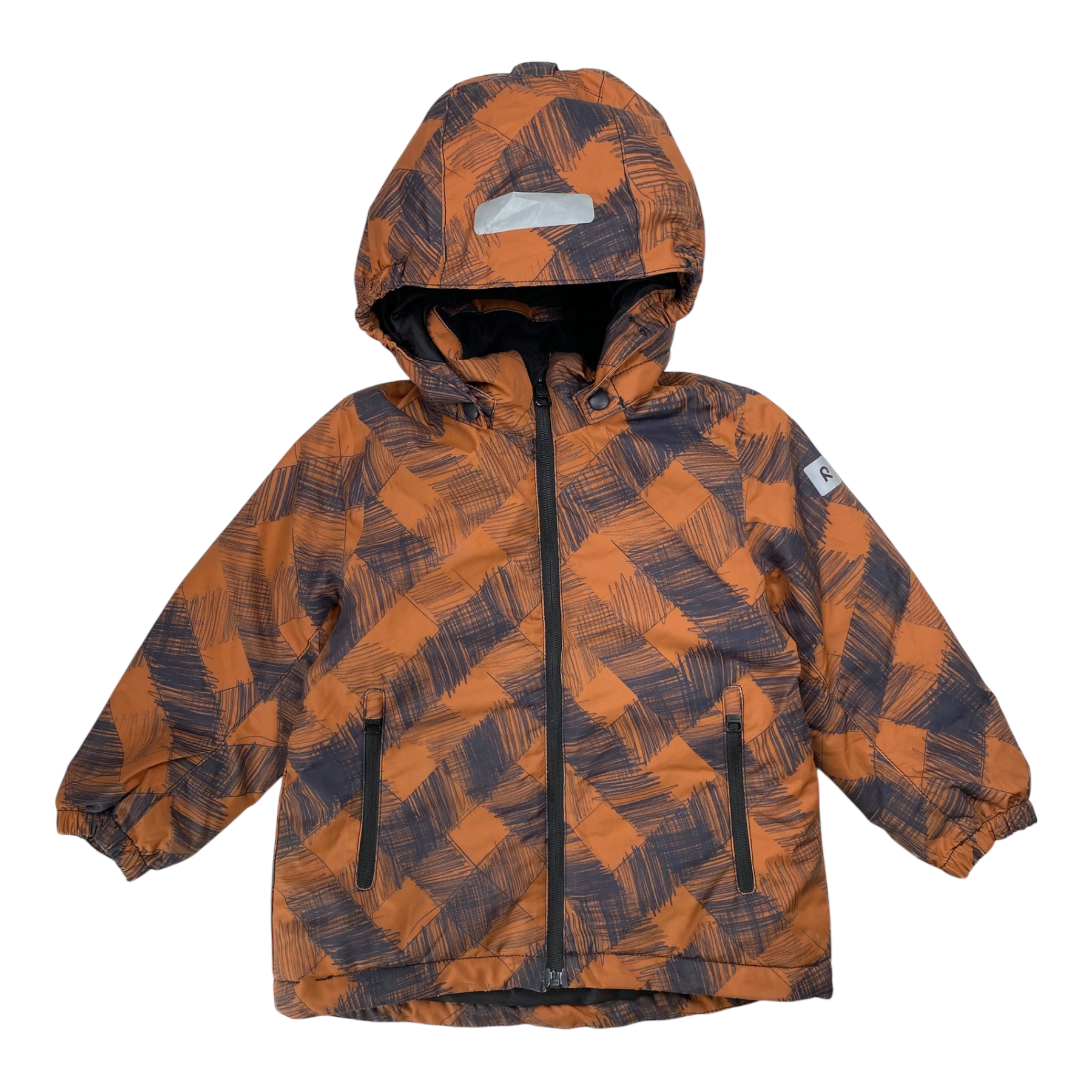 Reima Nuotio winter jacket with a removable hood, two pockets in the front and a zipper closure. Originally waterproof up to 10,000mm water column. Warm and breathable.