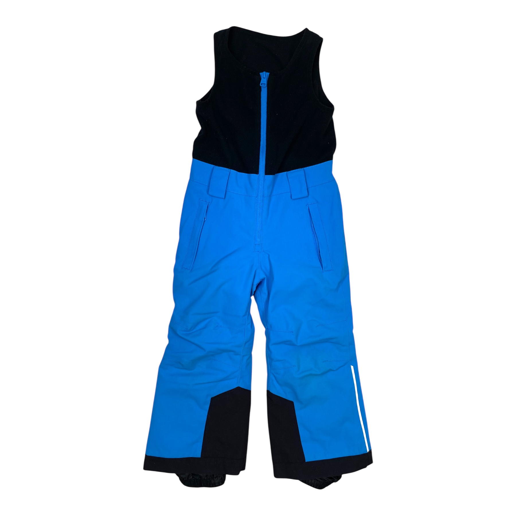Reima Oyron kid's padded winter outdoor pants with a fleece upper part, two pockets and snowlocks at leg ends.